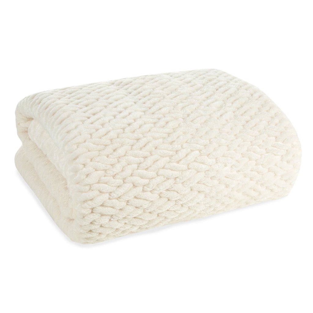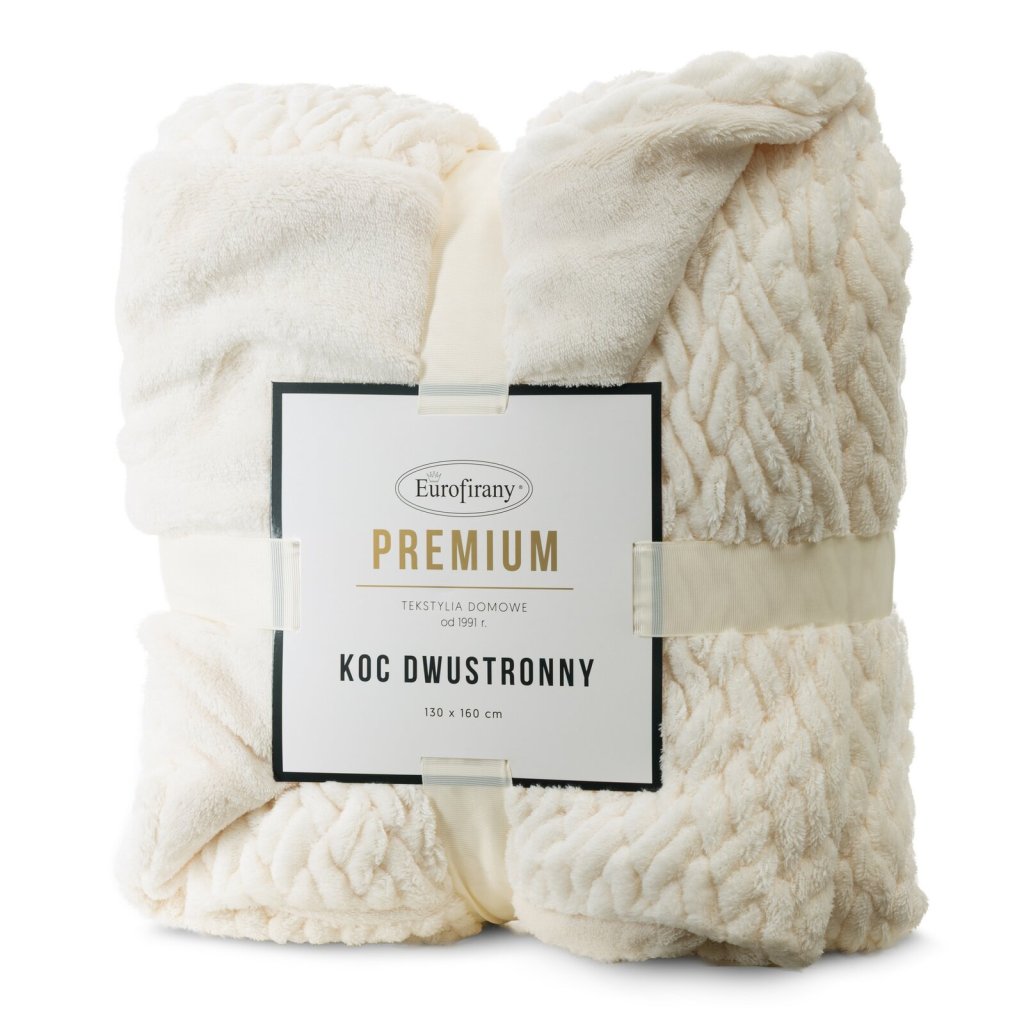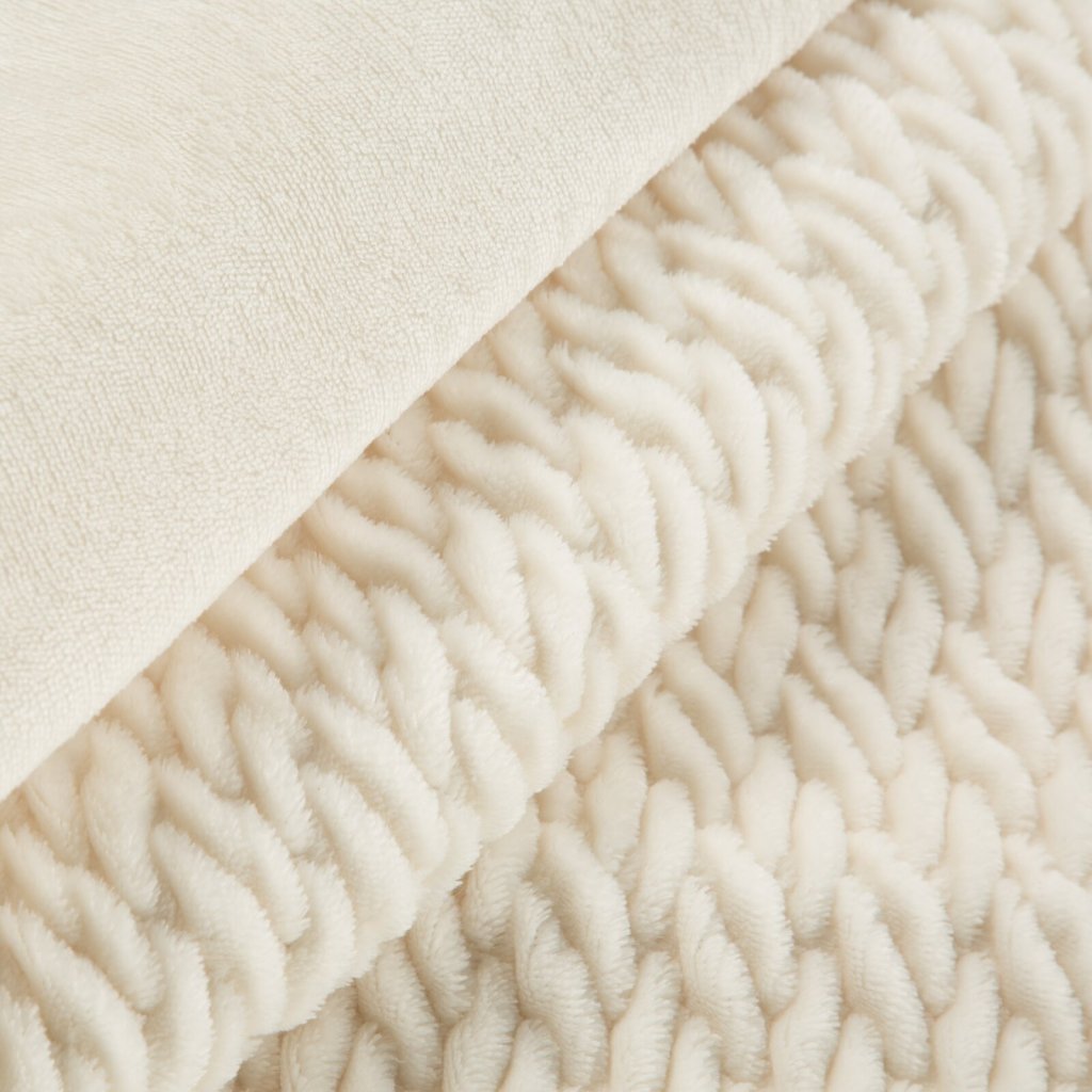 Jemná deka s copánkovým vzorem na jedné straně, fleecová deka na druhé straně. Šířka: 130 cm, délka: 160 cm, barva: krémová, hmotnost: 180 GSM, složení: 100% polyester.Doplňkové parametry