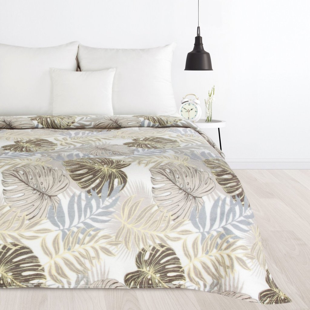 Na dotek měkká oboustranná deka s motivem listů, šířka: 150 cm, délka: 200 cm, barva: vícebarevná, hmotnost: 200 GSM, složení: 100% polyester.Doplňkové parametry
