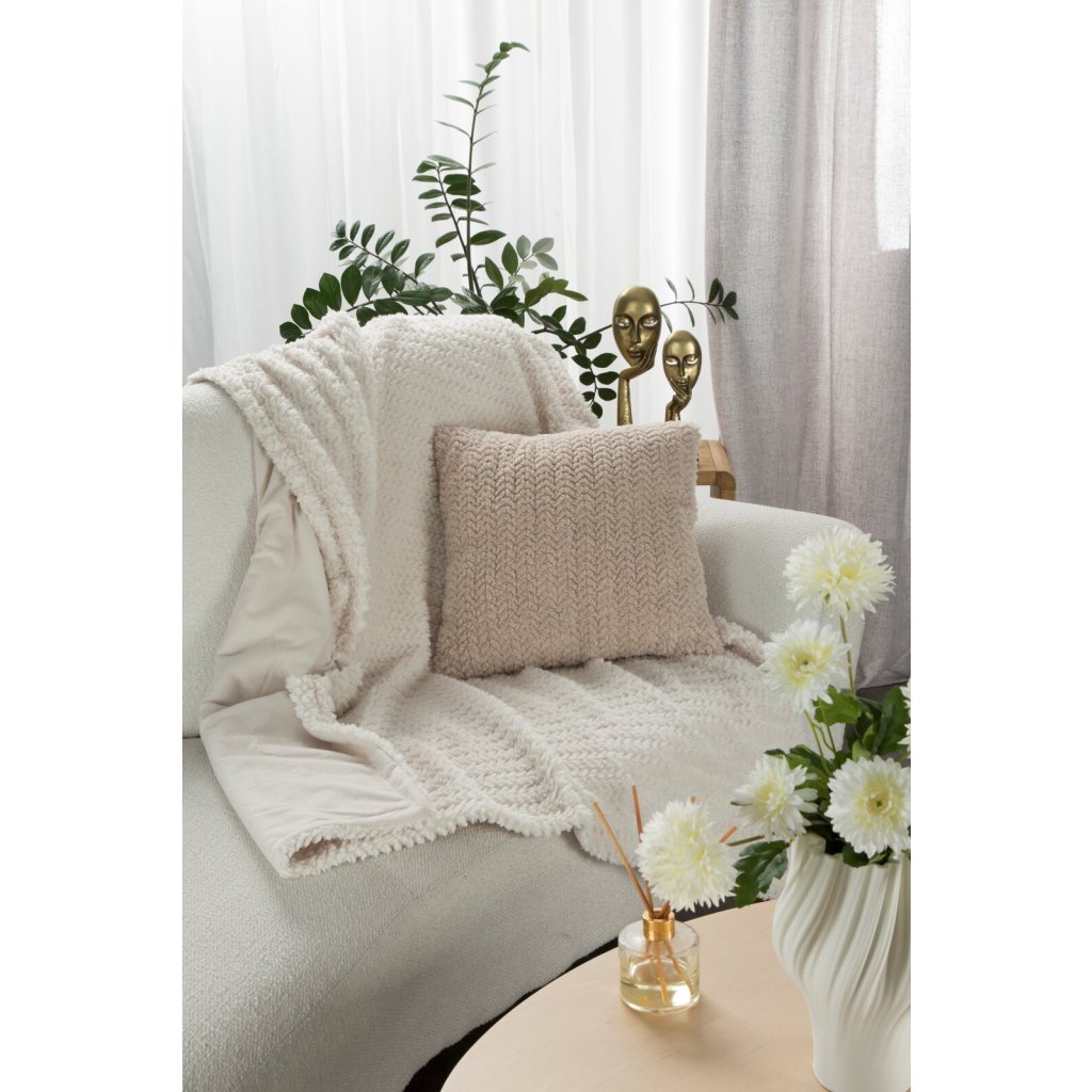 Dekorační deka zdobená lesklou nití, šířka: 130 cm, délka: 170 cm, barva: krémová, hmotnost: 390 GSM, složení: 100% polyester.Doplňkové parametry