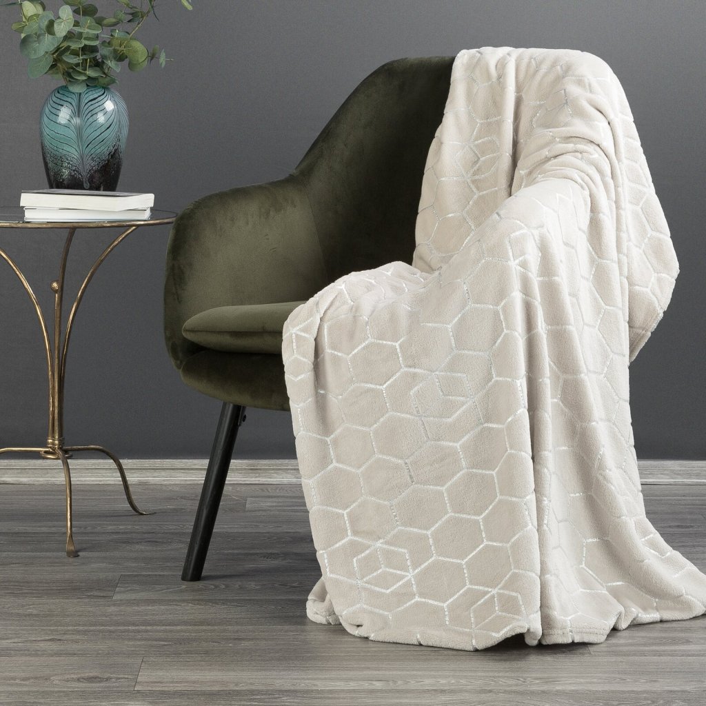 Deka velmi jemná na dotek s lesklým potiskem, šířka: 150 cm, délka: 200 cm, barva: krémová, hmotnost: 250 GSM, složení: 100% polyester.Doplňkové parametry