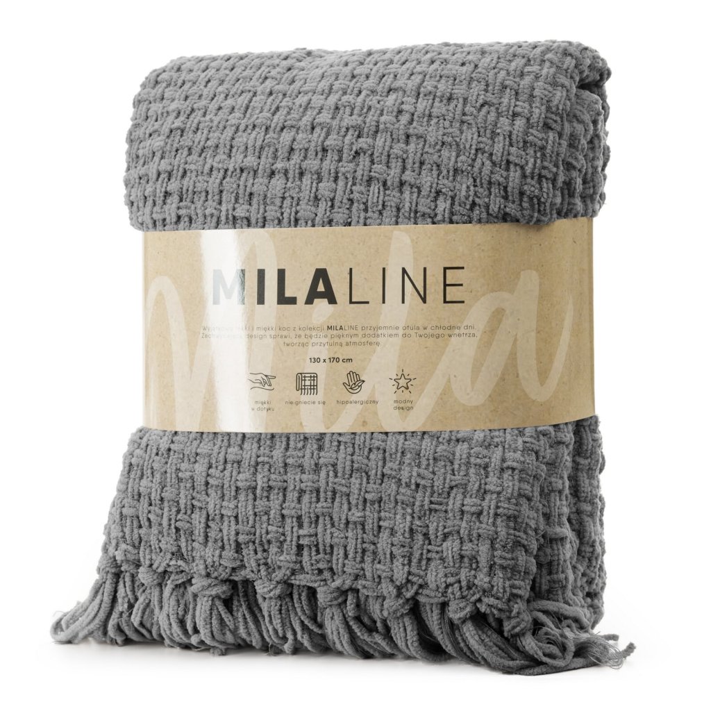 Tkaná deka se střapci, šířka: 130 cm, délka: 170 cm, barva: šedá, hmotnost: 380 GSM, složení: 100% polyester.Doplňkové parametry