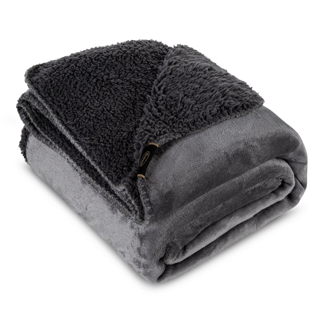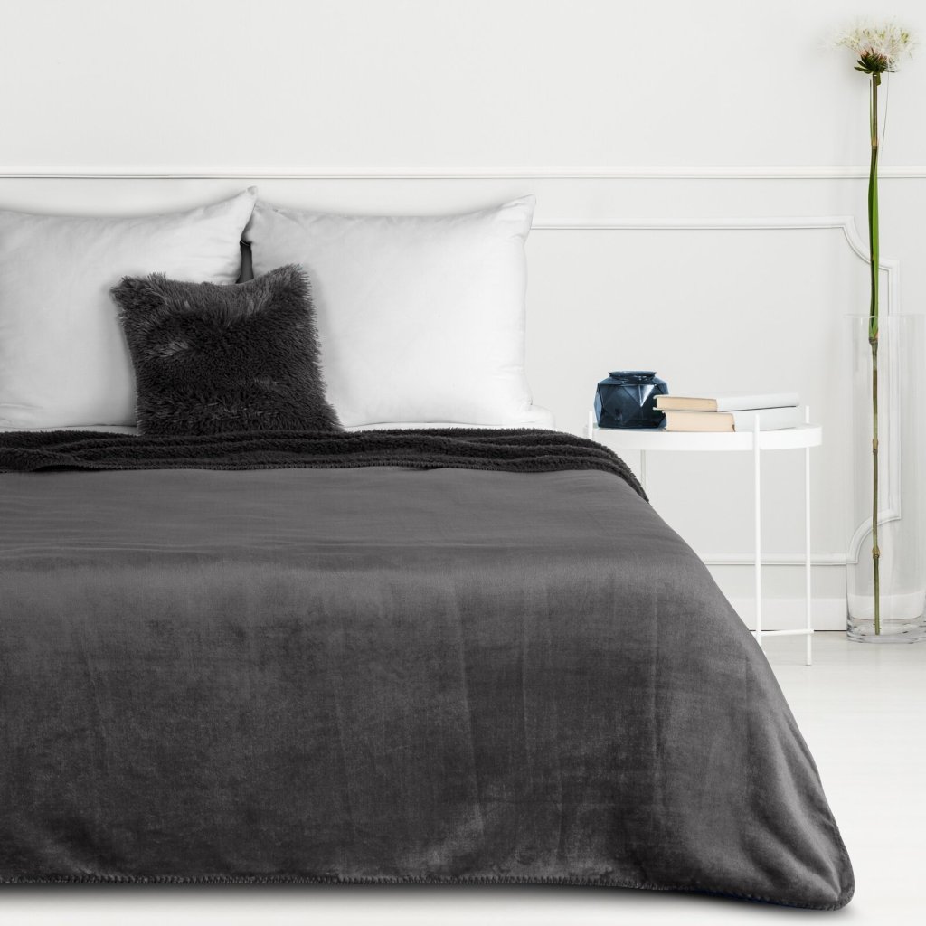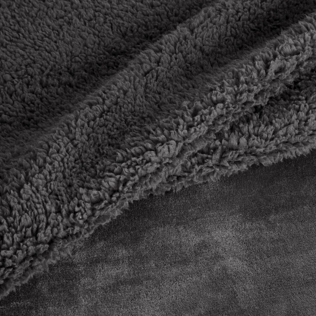 Pohodlná jednobarevná deka s jednou stranou z tkaniny bouclé, šířka: 170 cm, délka: 210 cm, barva: šedá, hmotnost: 340 GSM, složení: 100% polyester.Doplňkové parametry