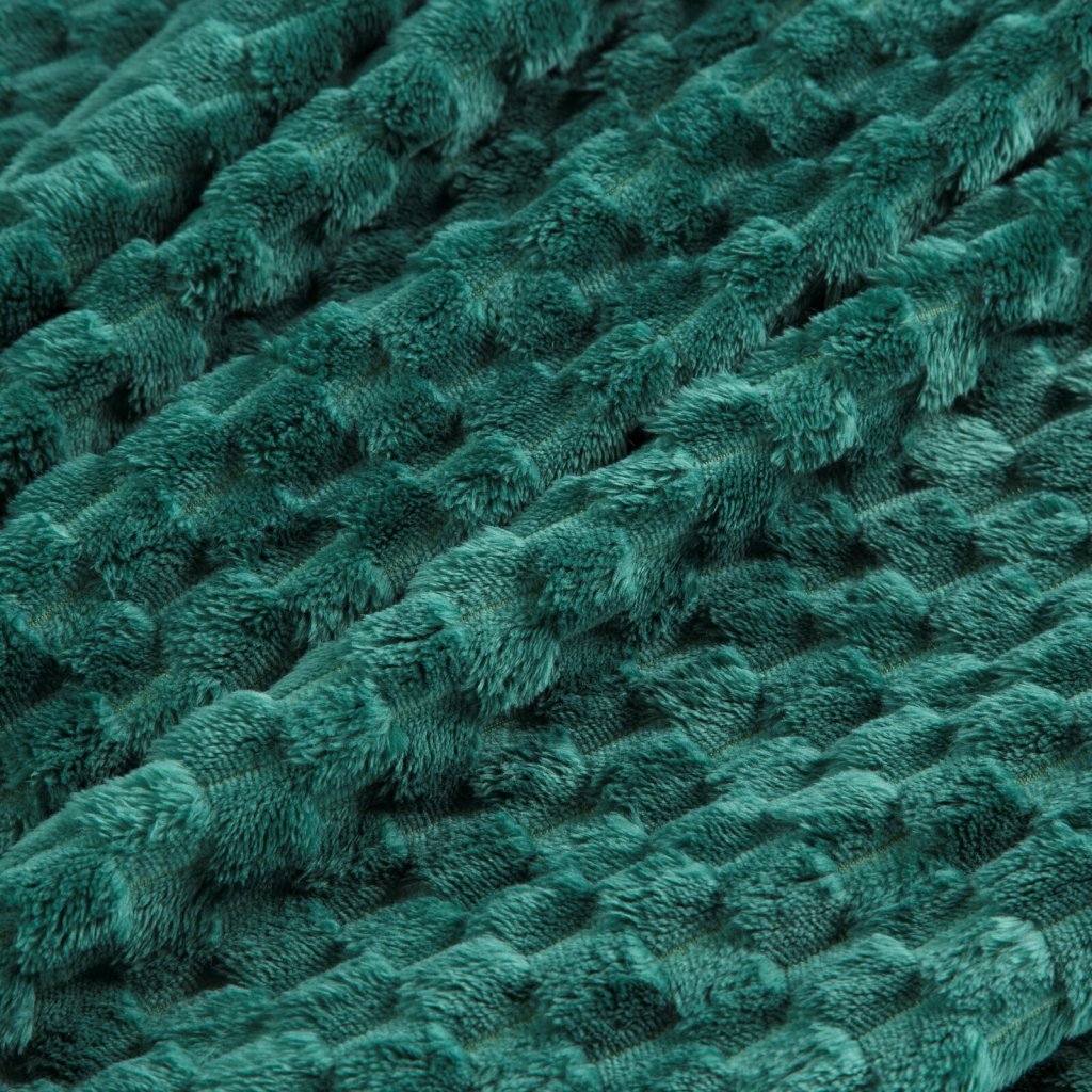 Klasická nadýchaná deka z mikroflanelového vlákna příjemného na dotek. Jednobarevnou nadýchanou strukturu zdobí minimalistický vzor rybí kosti. Šířka: 70 cm, délka: 160 cm, barva: tmavě zelená, hmotnost: 260 GSM, složení: 100% polyester.Doplňkové parametry