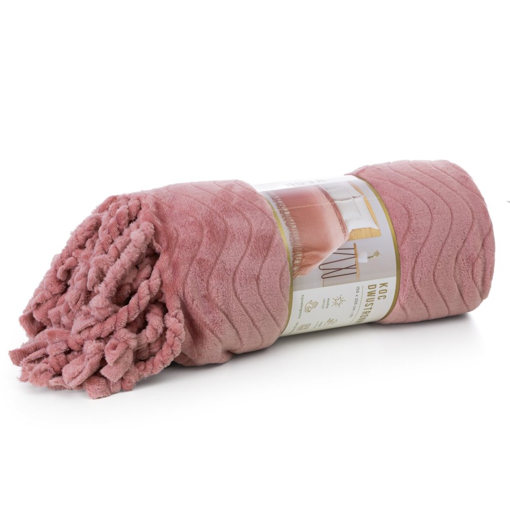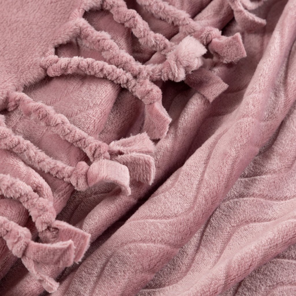 Flanelová deka s ozdobnými střapci, šířka: 150 cm, délka: 200 cm, barva: pudrově růžová, hmotnost: 280 GSM, složení: 100% polyester.Doplňkové parametry