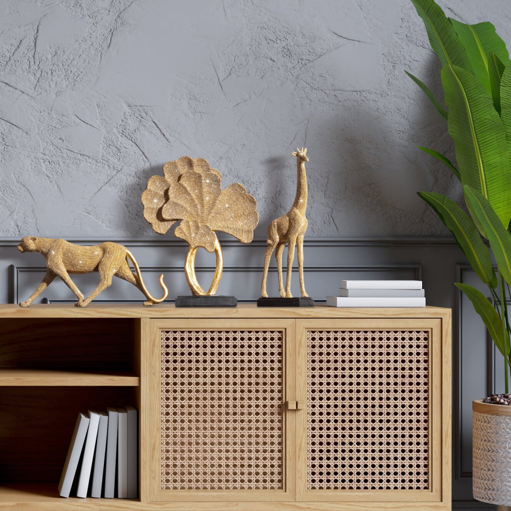 Dekorativní figurka z kolekce ELDO. Šířka: 17 cm, tloušťka: 6 cm, délka: 29 cm, barva: zlatá, složení: polyesterová pryskyřice.Doplňkové parametry