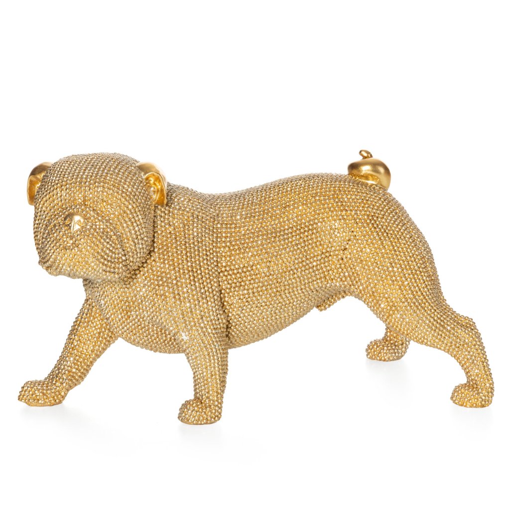 Dekorativní figurka ve tvaru psa, šířka: 28 cm, délka: 14 cm, výška: 17 cm, barva: zlatá, složení: polyesterová pryskyřice.Doplňkové parametry