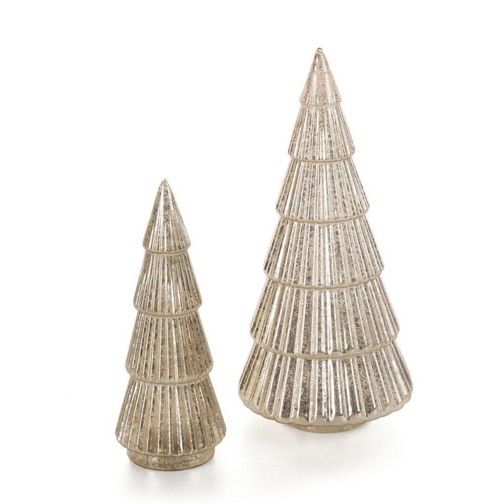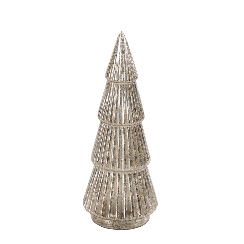 Dekorativní figurka ve tvaru vánočního stromku s LED světýlky, šířka: 10 cm, délka: 31 cm, barva: stříbrná, složení: 100% sklo, napájení: 3 X AA 1,5 V.Doplňkové parametry