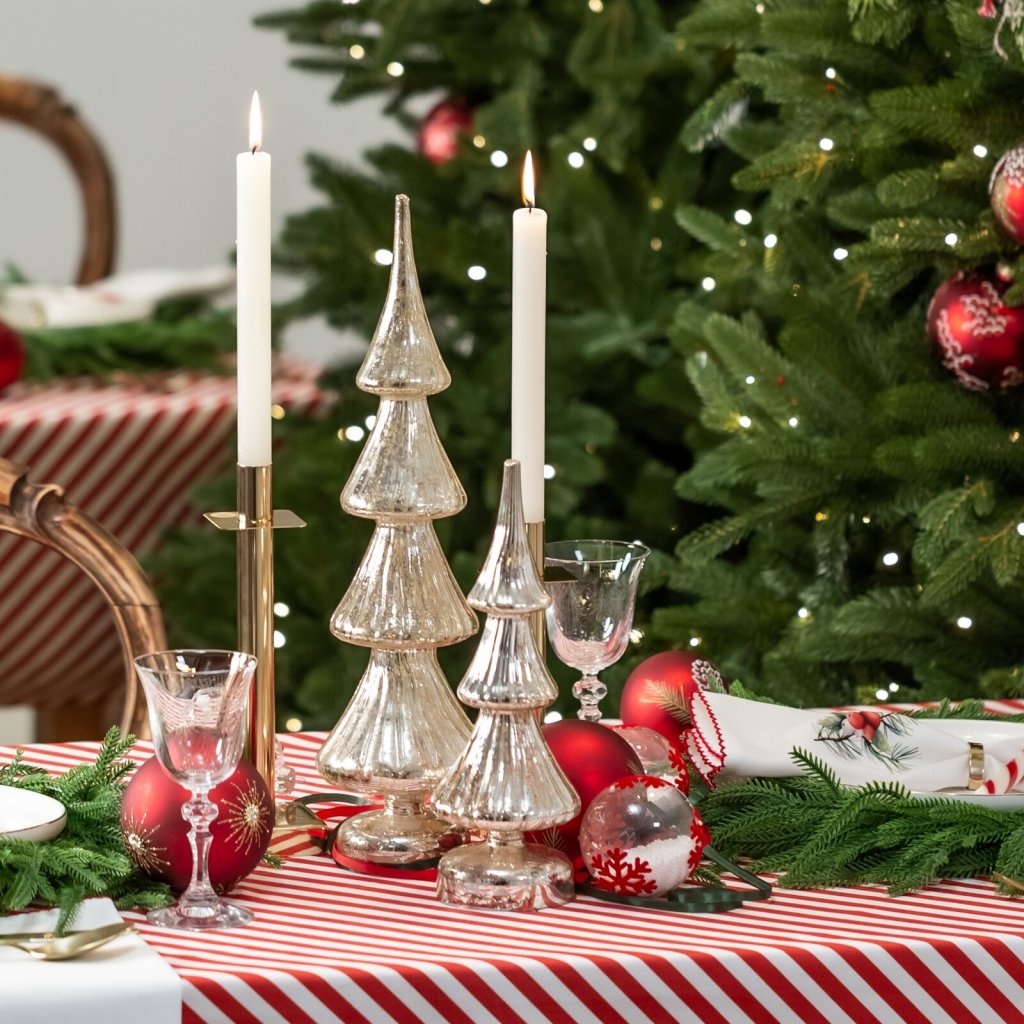 Dekorativní figurka ve tvaru vánočního stromku s LED světýlky, šířka: 9 cm, délka: 30 cm, barva: stříbrná, složení: 100% sklo, napájení: 3 X AA 1,5 V.Doplňkové parametry