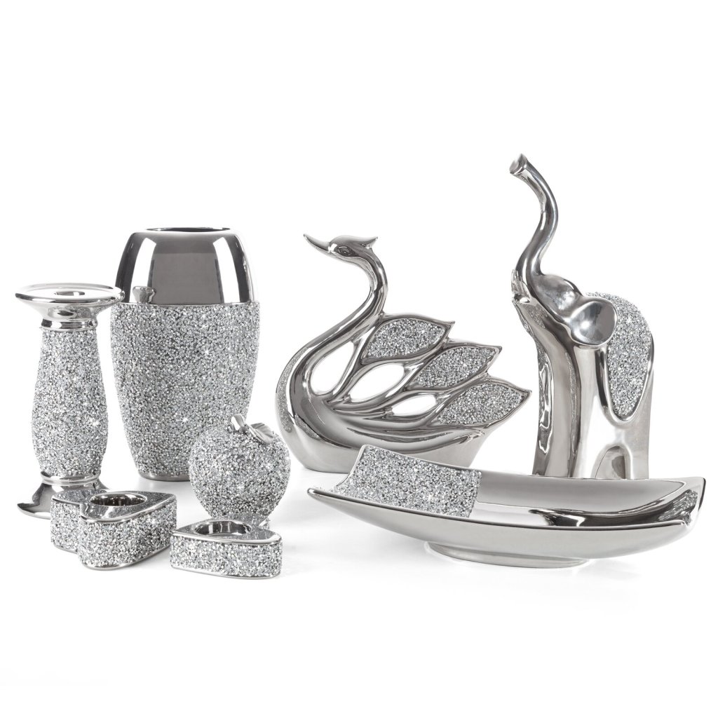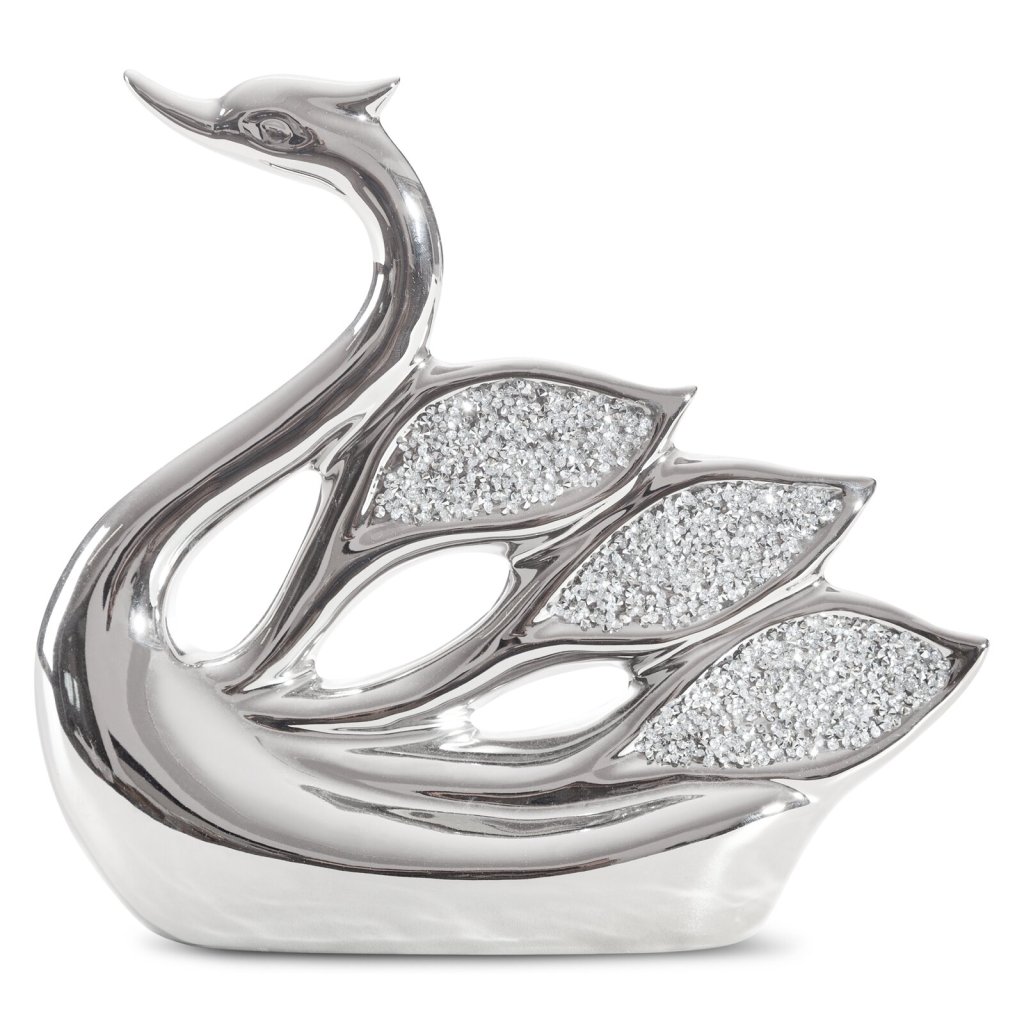 Dekorativní figurka z kolekce PALMERA. Šířka: 27 cm, tloušťka: 8 cm, délka: 26 cm, barva: stříbrná, složení: keramická hlína.Doplňkové parametry