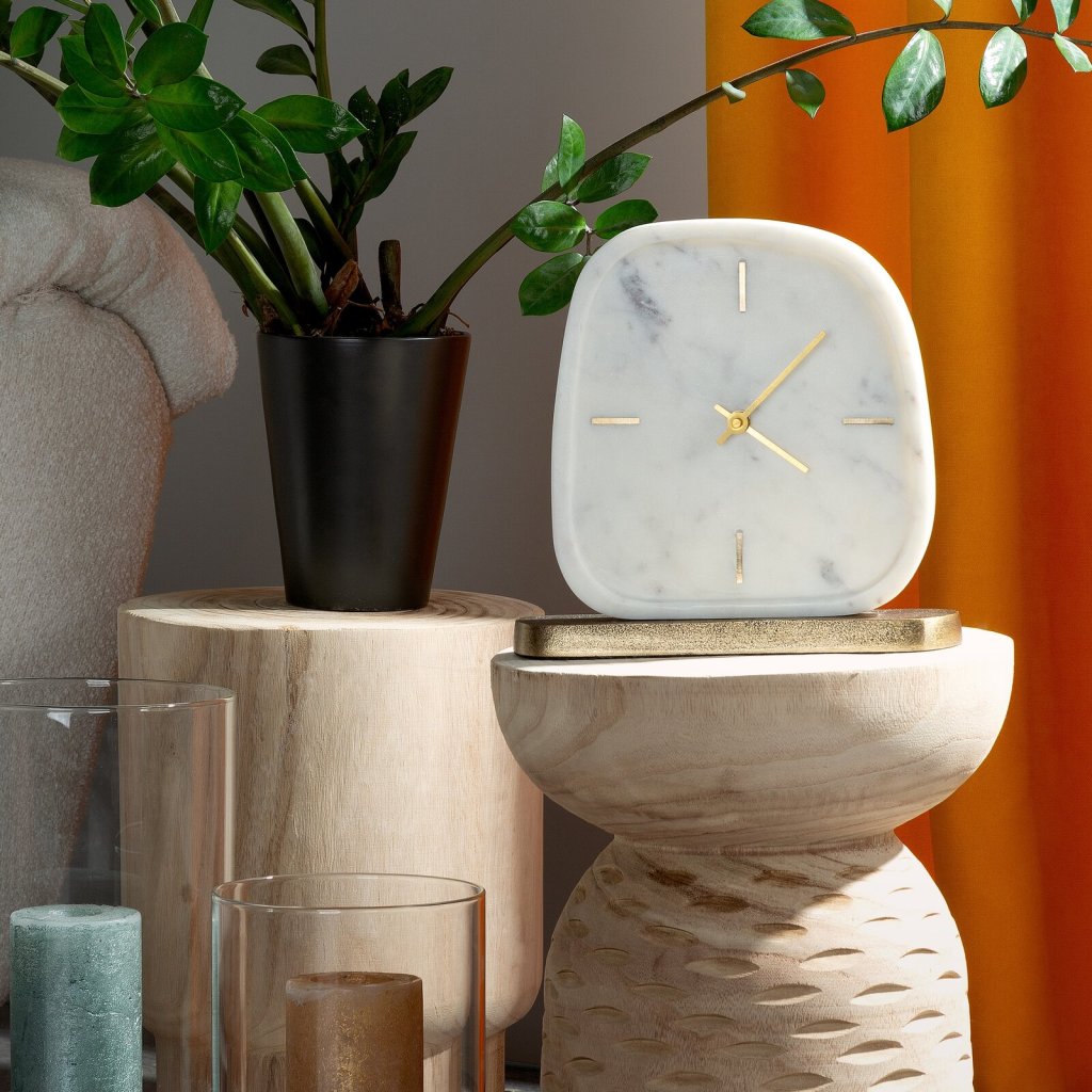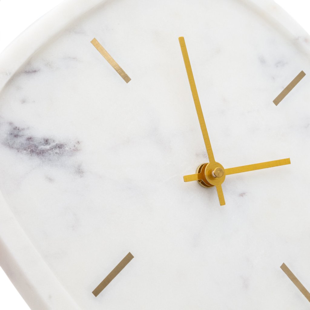 Mramorové stolní hodiny. Šířka: 22 cm, délka: 22 cm, barva: bílá, složení: mramor.Doplňkové parametry