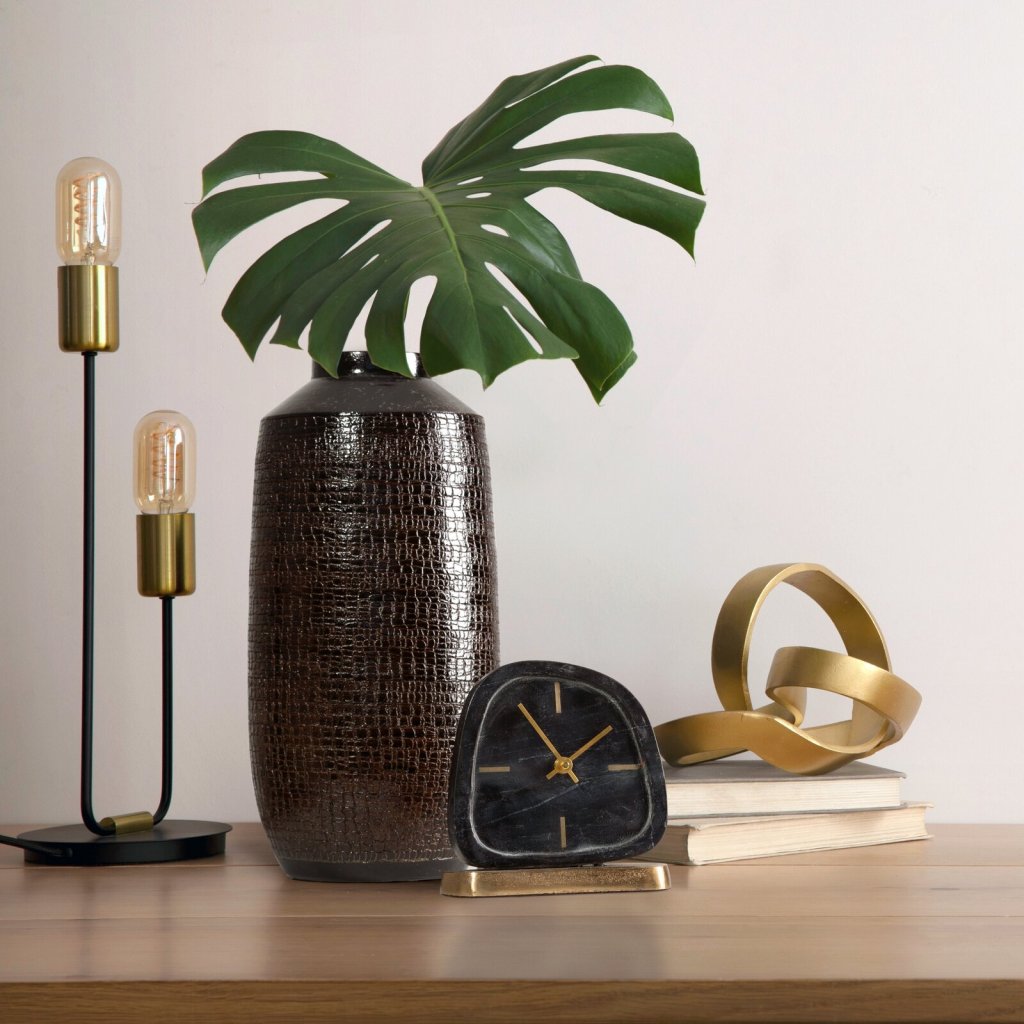 Mramorové stolní hodiny. Šířka: 17 cm, délka: 17 cm, barva: černá, složení: mramor.Doplňkové parametry