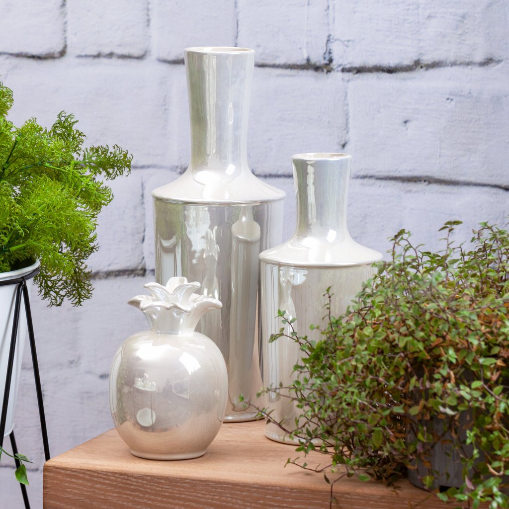 Dekorativní květináč, šířka: 22 cm, délka: 16 cm, barva: perleťová, složení: keramická hlína.Doplňkové parametry