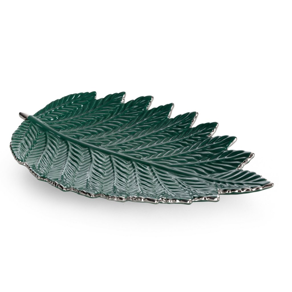 Dekorativní talíř ve tvaru listu, šířka: 18 cm, délka: 30 cm, barva: zelená, složení: 100% keramická hlína.Doplňkové parametry