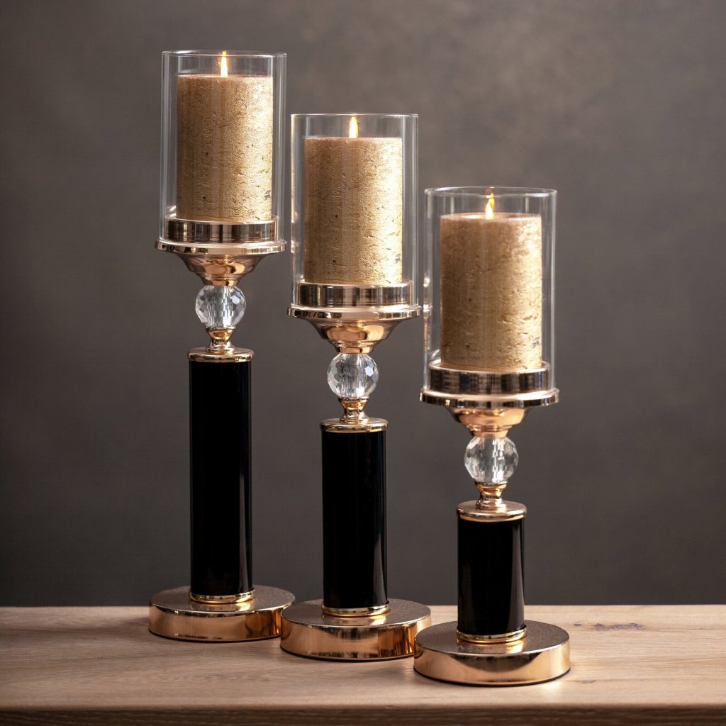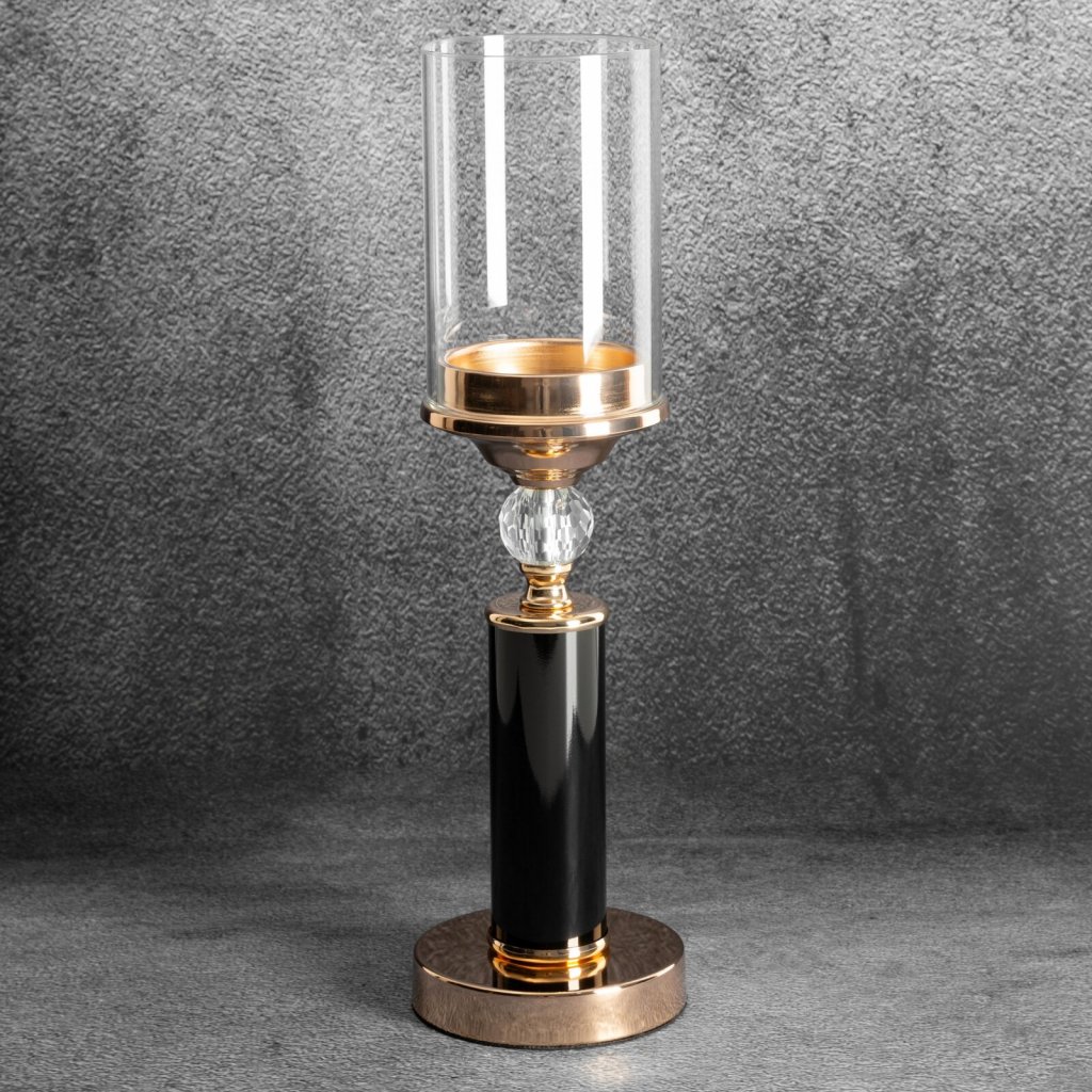 Dekorativní svícen šířka: (fi) 12 cm, délka: 42 cm, barva: zlatá, složení: kov+skloDoplňkové parametry