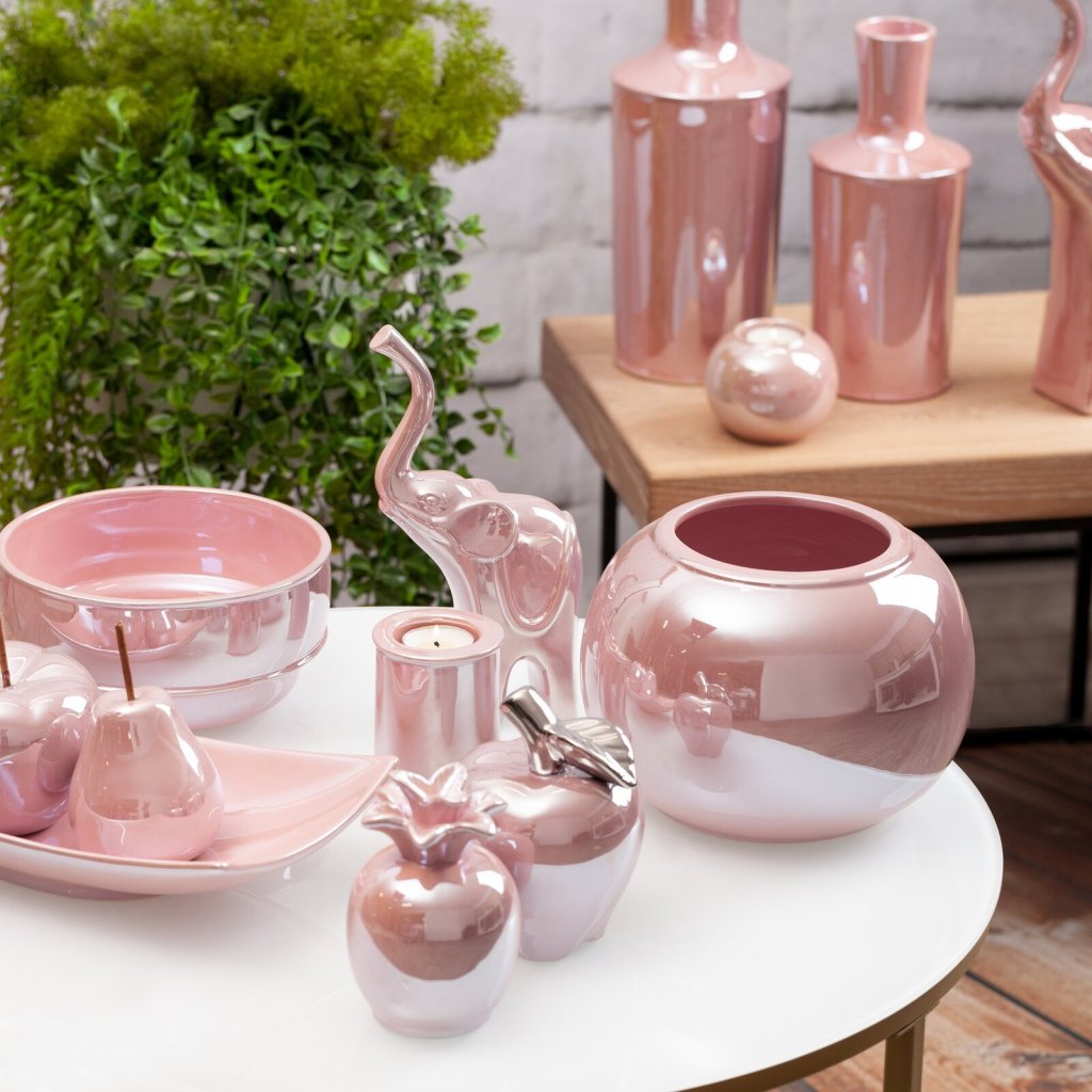 Dekorativní svícen šířka: (fi) 7 cm, délka: 15 cm, barva: růžová, složení: keramická hlínaDoplňkové parametry