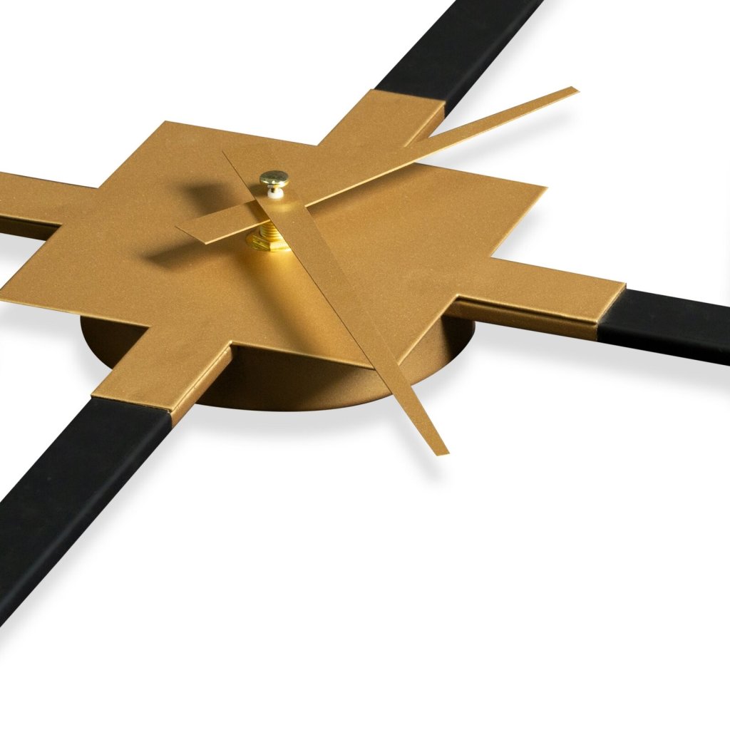 Dekorativní nástěnné hodiny šířka: 80 cm, tloušťka: 5 cm, barva: černá / zlatá, složení: železo, napájení: 1x AA BATERIE.Doplňkové parametry