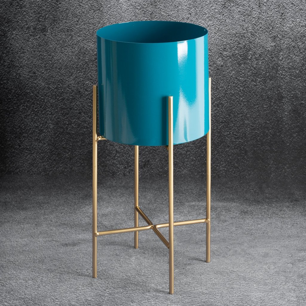 Dekorativní květináč, velikost: 18x40 cm, barva: tyrkysová, složení: kov.Doplňkové parametry