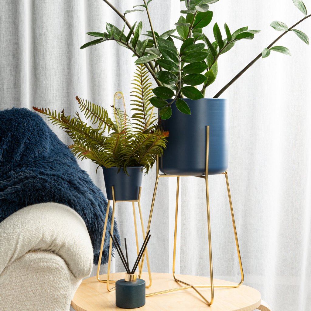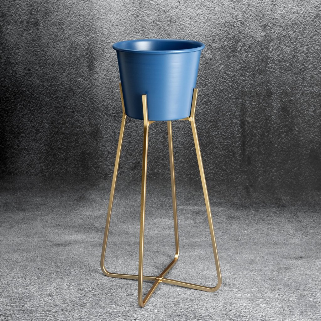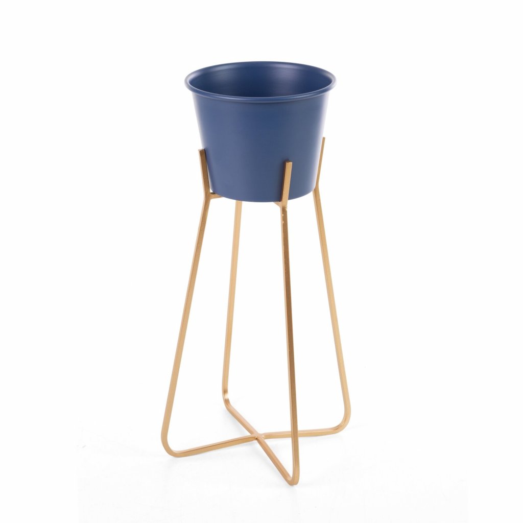 Dekorativní květináč, velikost: 19x34 cm, barva: modrá/zlatá, složení: kov.Doplňkové parametry