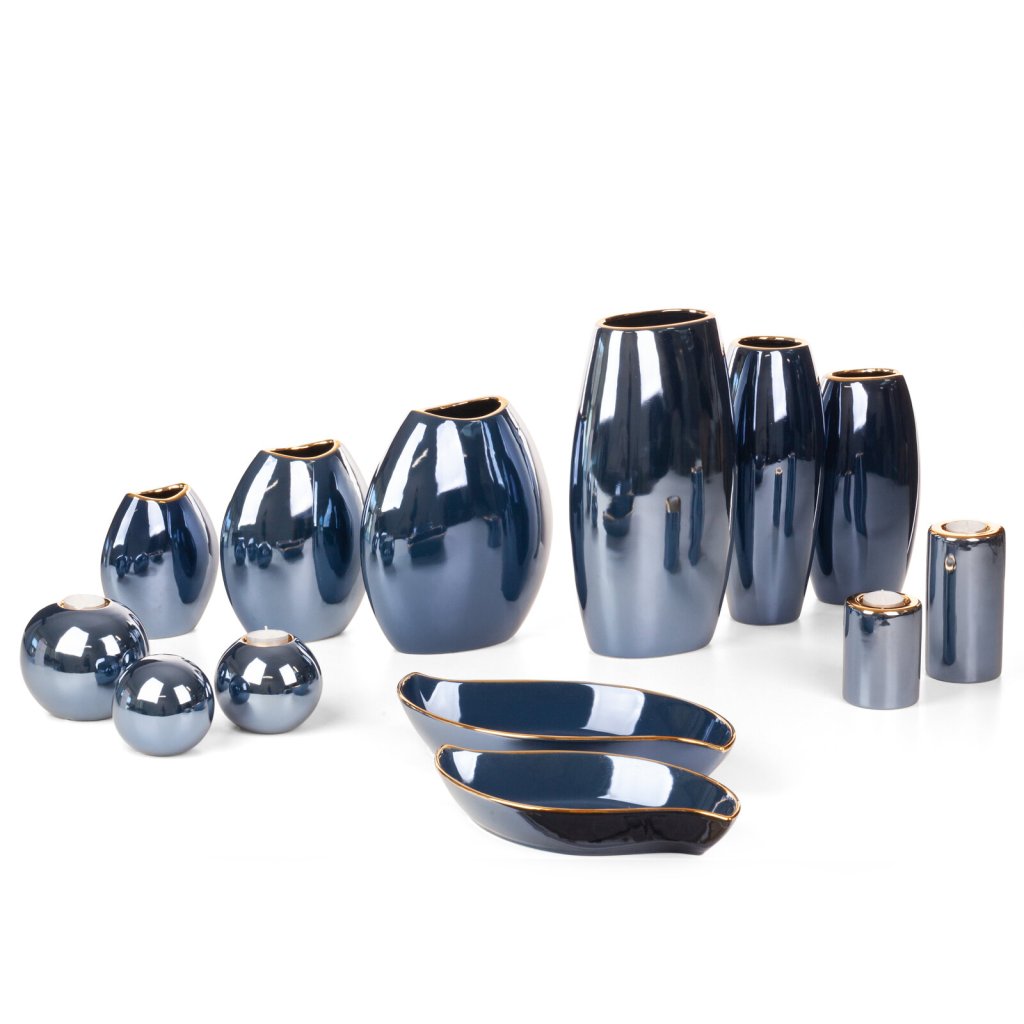 Krásná a jednoduchá dekorativní miska, šířka: 31 cm, délka: 17 cm, barva: modrá a zlatá, složení: keramická hlína.Doplňkové parametry