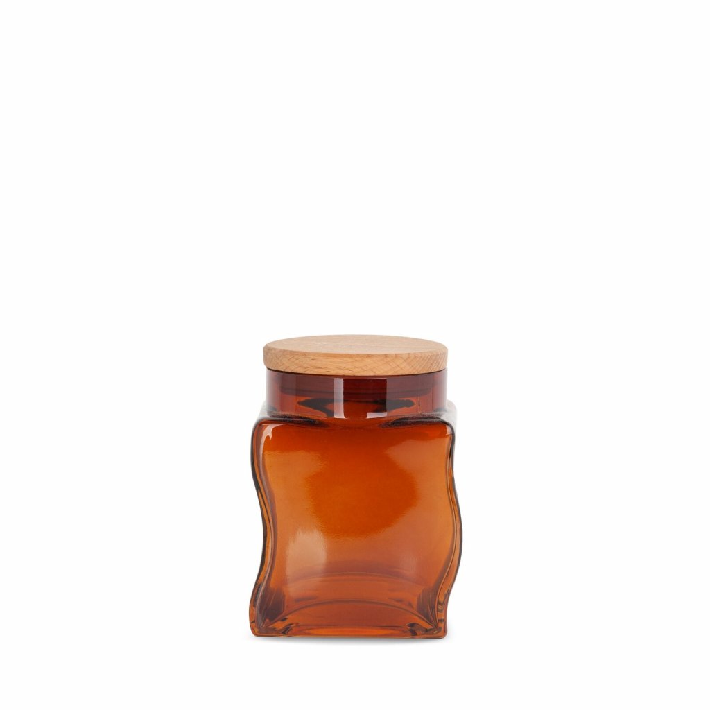 Dekorativní nádoba šířka: 10 cm, délka: 10 cm, barva: zlatá, Složení: 100% sklo. Skleněná dóza s bambusovým víčkem má pod víčkem silikonové těsnění.Doplňkové parametry