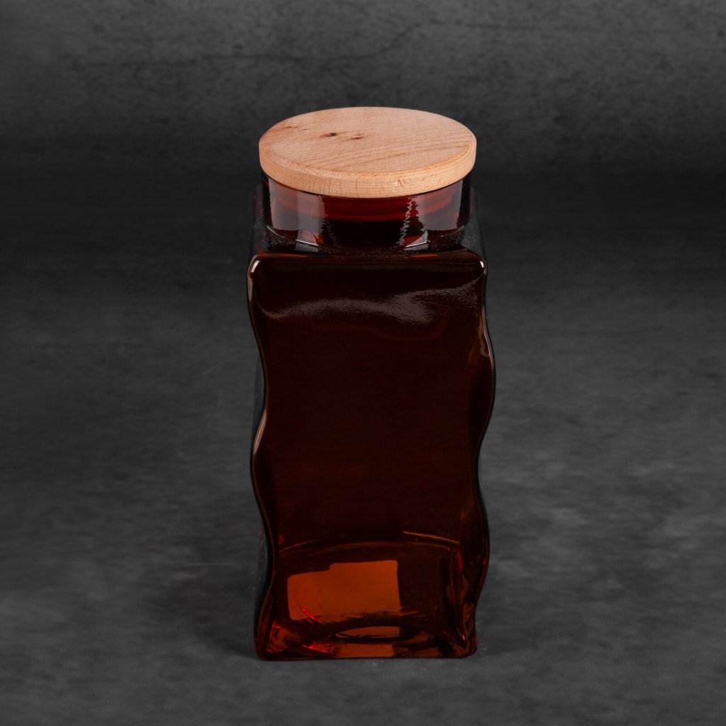 Dekorativní nádoba šířka: 10 cm, délka: 10 cm, barva: zlatá, Složení: 100% sklo. Skleněná dóza s bambusovým víčkem má pod víčkem silikonové těsnění.Doplňkové parametry