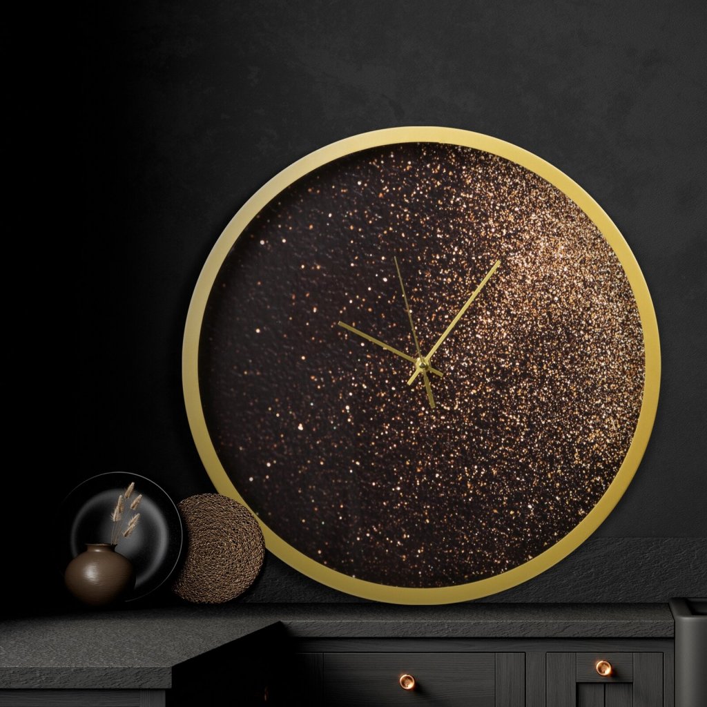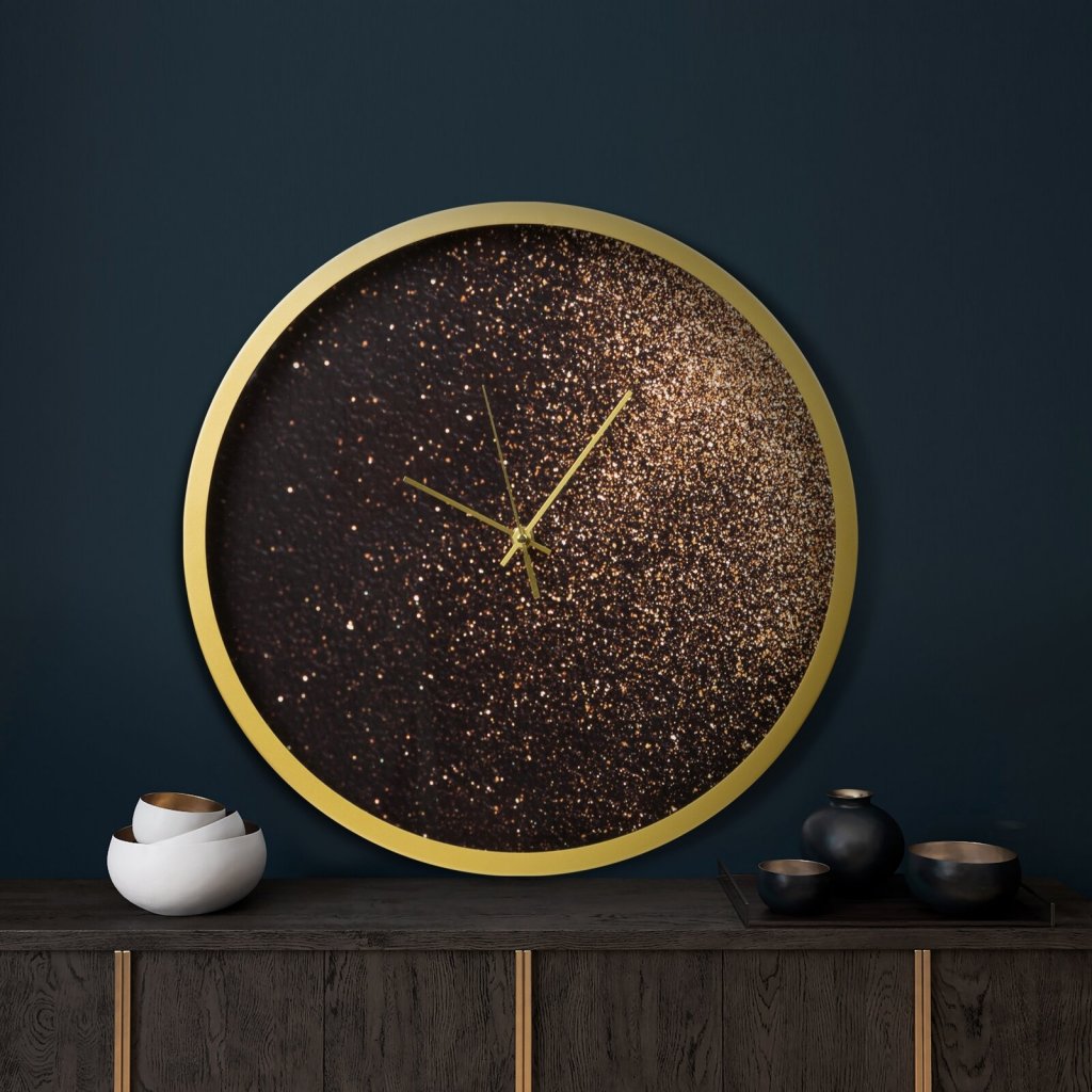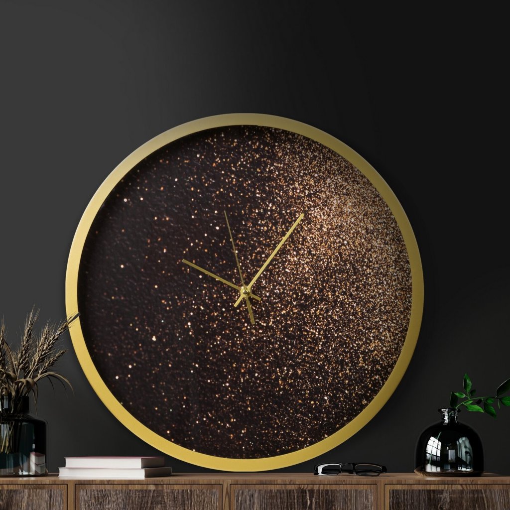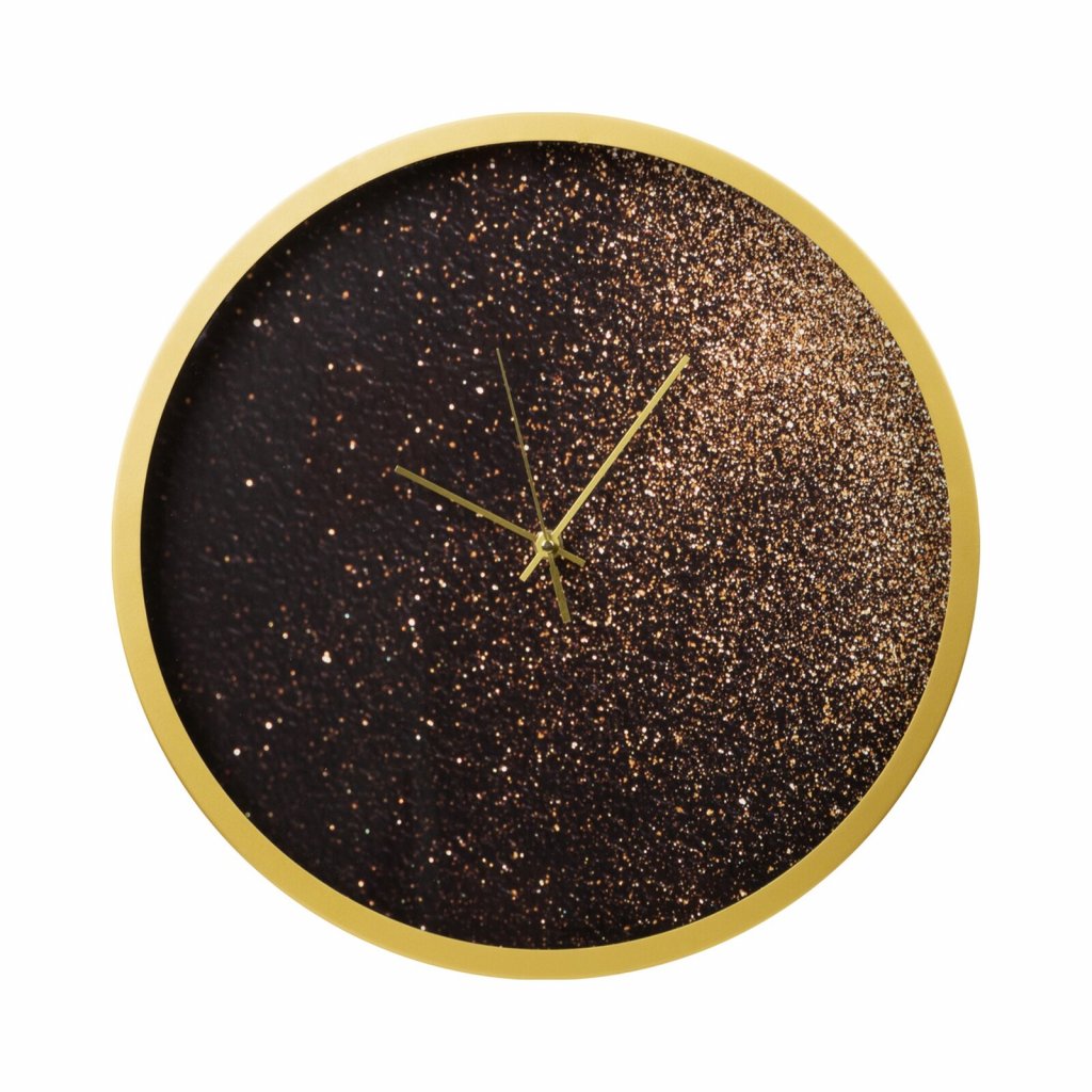 Dekorační nástěnné hodiny v moderním stylu, zdobené zlatými třpytkami