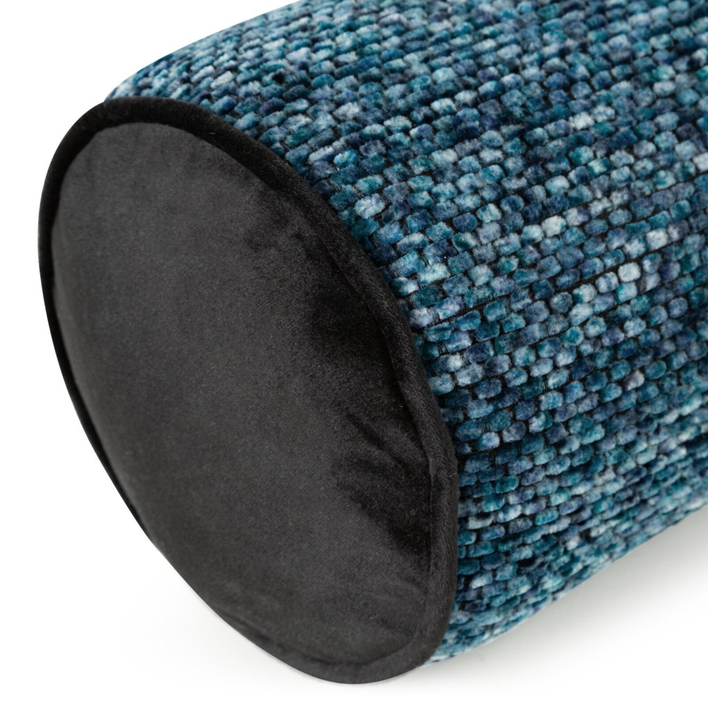 Dodejte svému interiéru eleganci a útulnost díky dekorativnímu válečku ze silného žinylkového vlákna s melanžovým efektem. Jeho strukturovaný povrch dodává polštáři luxusní vzhled a okraje prošité jemným sametem jemně kontrastují se strukturou žinylky, čímž umocňují jeho exkluzivní charakter. Dalším dekorativním prvkem je elegantní sametový lem. Šířka: 15 cm, délka: 45 cm, barva: modrá, hmotnost: 290 GSM, složení: 100% polyester.Doplňkové parametry