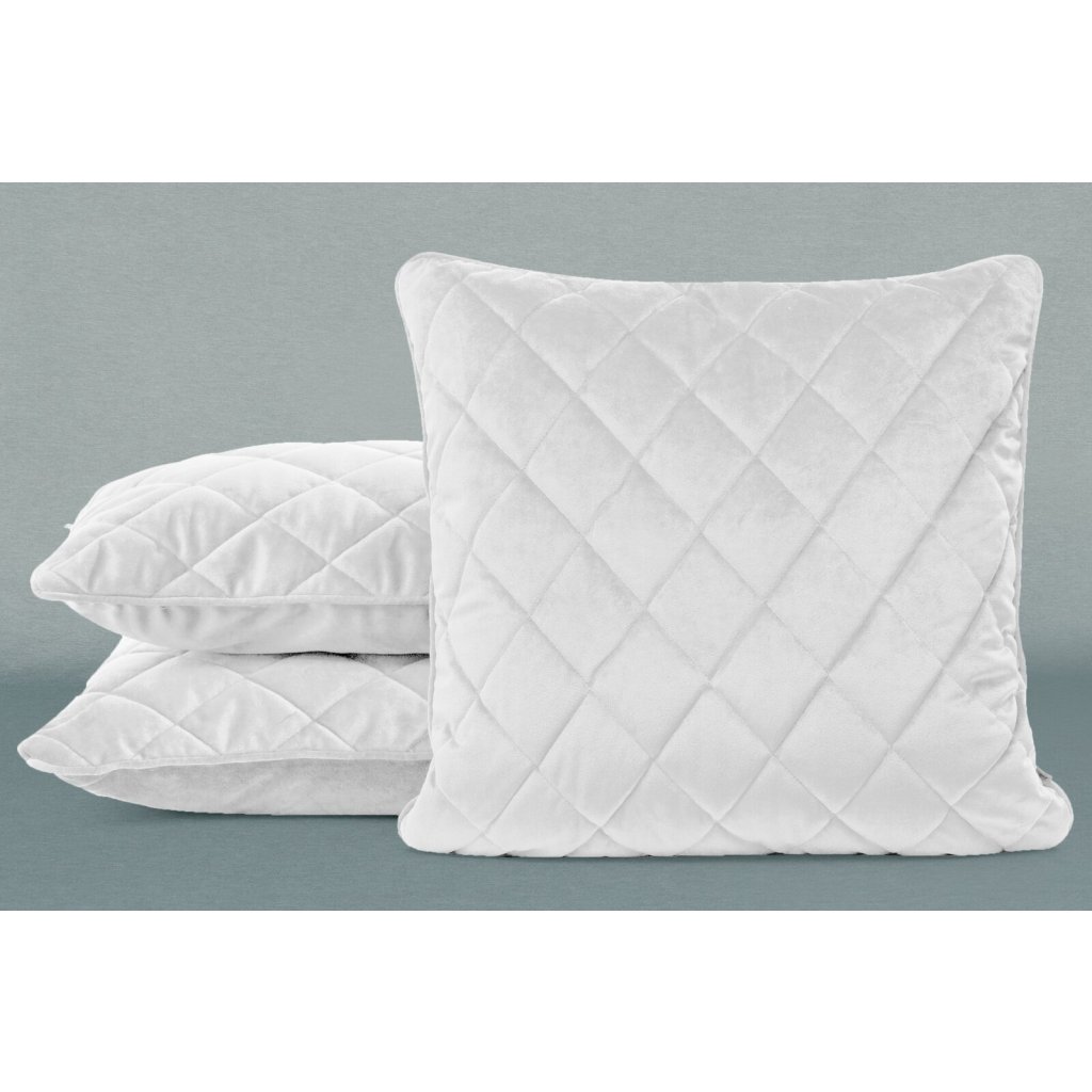 Sametový polštářek s výplní prošitý nití. Šířka: 50 cm, délka: 50 cm, barva: bílá, hmotnost: 250 GSM, složení: 100% polyester.Doplňkové parametry