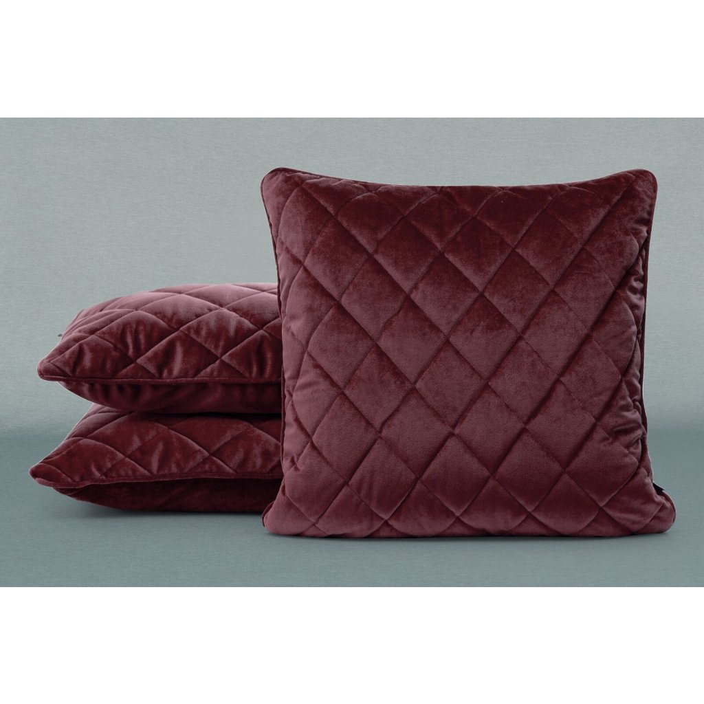 Sametový polštář s výplní prošívaný nití. Šířka: 50 cm, délka: 50 cm, barva: vínová, hmotnost: 250 GSM, složení: 100% polyester.Doplňkové parametry