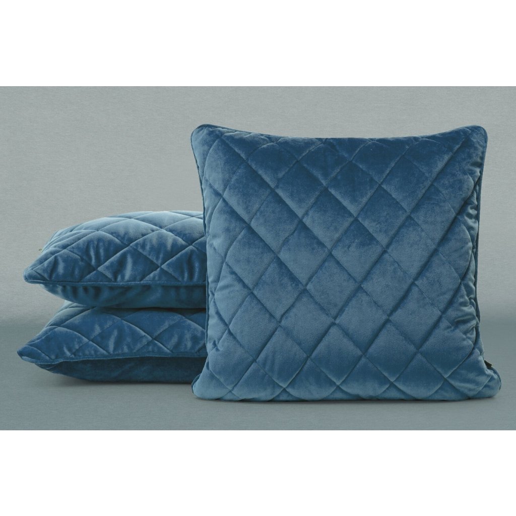 Sametový dekorační polštářek s výplní prošívaný nití. Šířka: 50 cm, délka: 50 cm, barva: modrá, hmotnost: 250 GSM, složení: 100% polyester.Doplňkové parametry