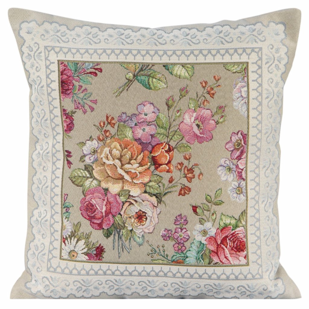 Gobelínový dekorační povlak na polštář zdobený potiskem. Šířka: 40 cm, délka: 40 cm, barva: pestrobarevná.Doplňkové parametry