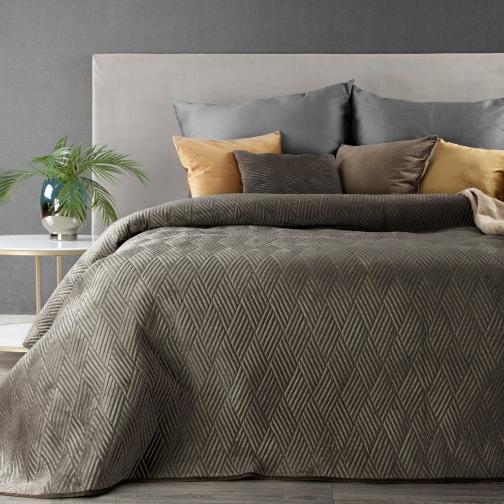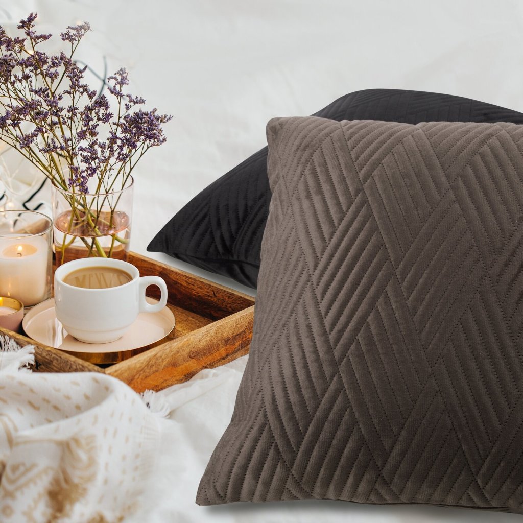 Sametový dekorační povlak na polštář zdobený bezešvým vzorem. Šířka: 40 cm, délka: 40 cm, barva: hnědá, hmotnost: 180 GSM, složení: 100 % polyester.Doplňkové parametry