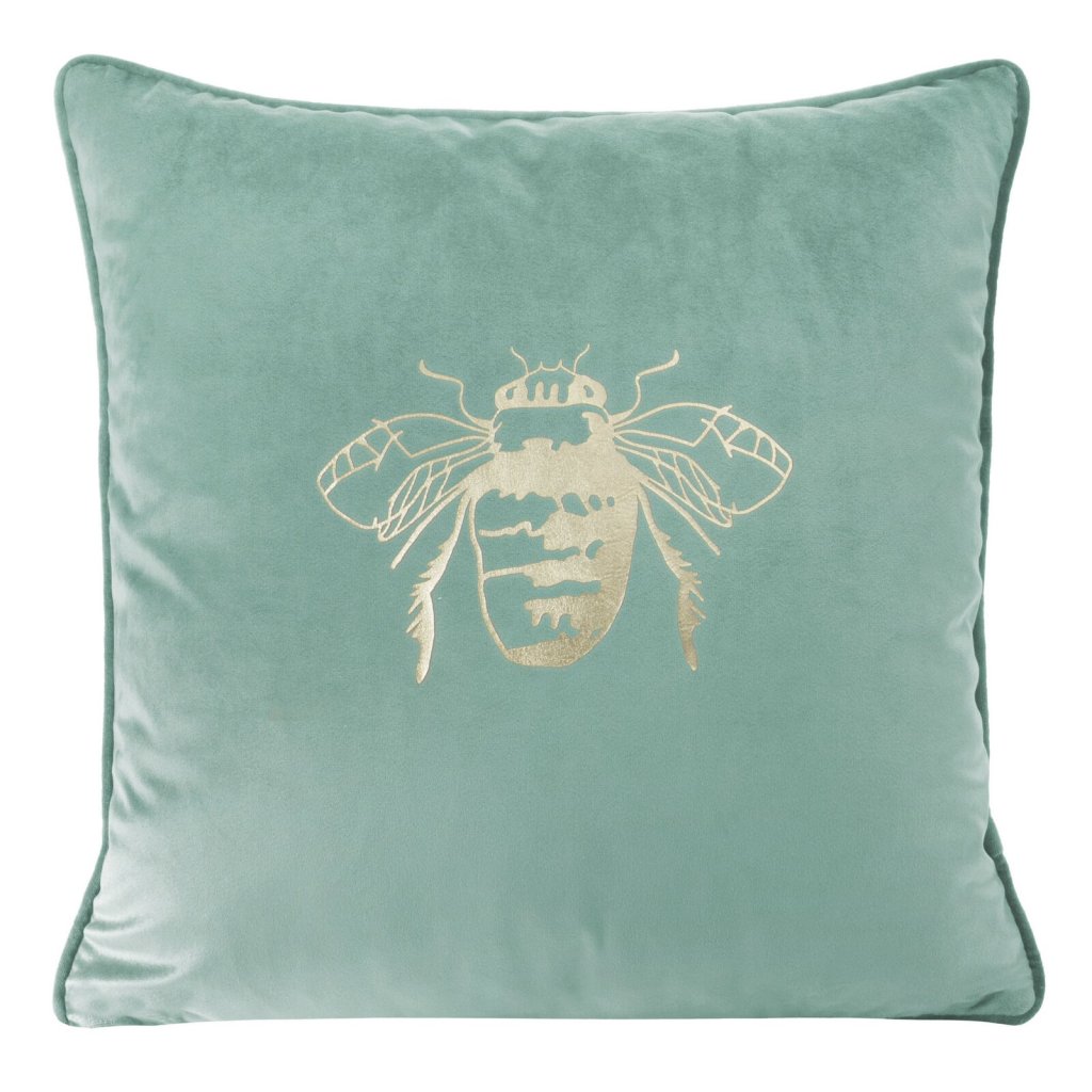 Sametový dekorační povlak na polštář s potištěným lemem. Šířka: 45 cm, délka: 45 cm, barva: mátová, hmotnost: 250 GSM, složení: 100% polyester.Doplňkové parametry