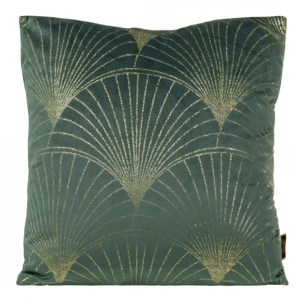Dekorační povlak na polštář zdobený potiskem. Šířka: 45 cm, délka: 45 cm, barva: tmavě mátová/světle zlatá, hmotnost: 250 GSM, složení: 100% polyester.Doplňkové parametry