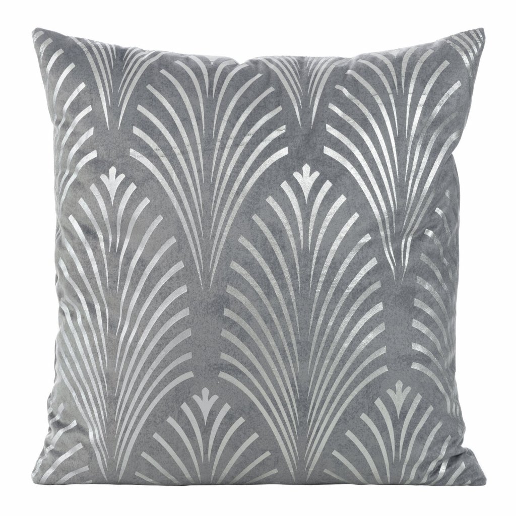 Dekorační povlak na polštář zdobený potiskem. Šířka: 45 cm, délka: 45 cm, barva: stříbrná, hmotnost: 220 GSM, složení: 100% polyester.Doplňkové parametry