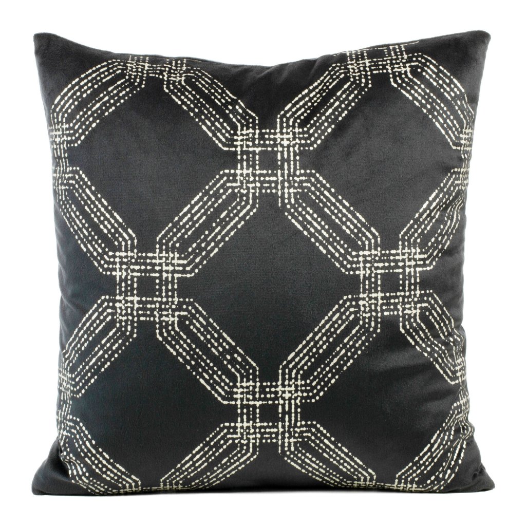 Dekorační povlak na polštář zdobený potiskem. Šířka: 45 cm, délka: 45 cm, barva: tmavě šedá, hmotnost: 220 GSM, složení: 100% polyester.Doplňkové parametry