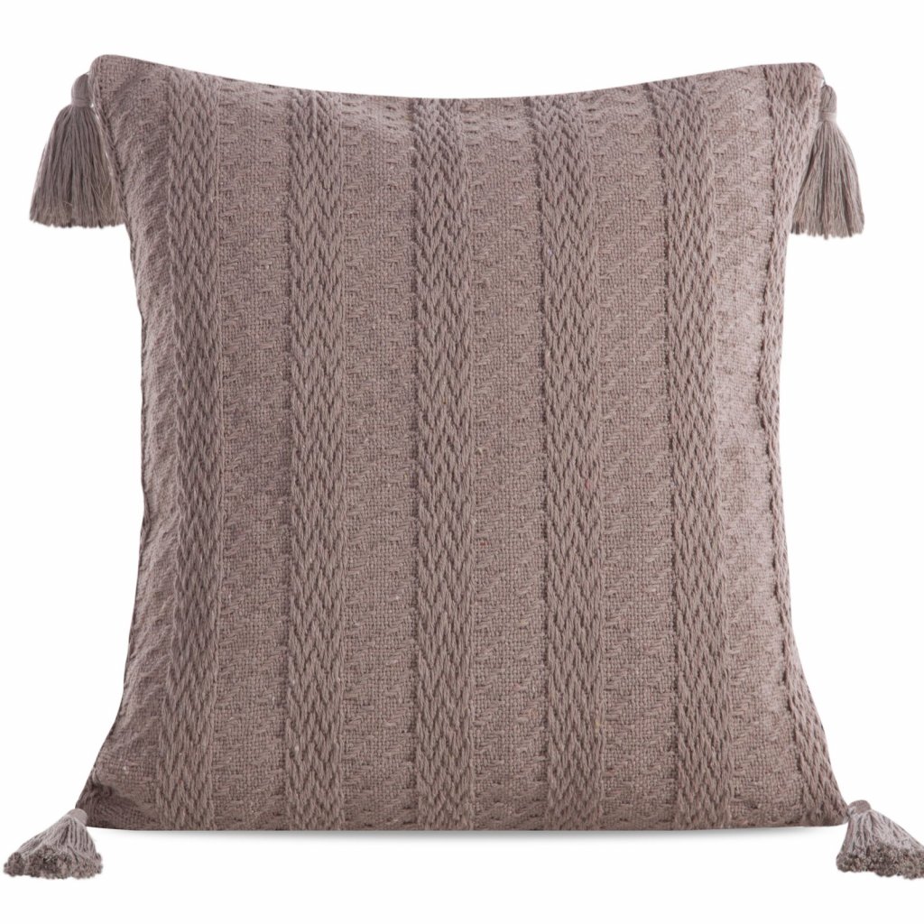 Dekorační boho povlak na polštář zdobený střapci, šířka: 45 cm, délka: 45 cm, barva: hnědá, gramáž: 230 GSM, složení: 30% bavlna 70% polyester..