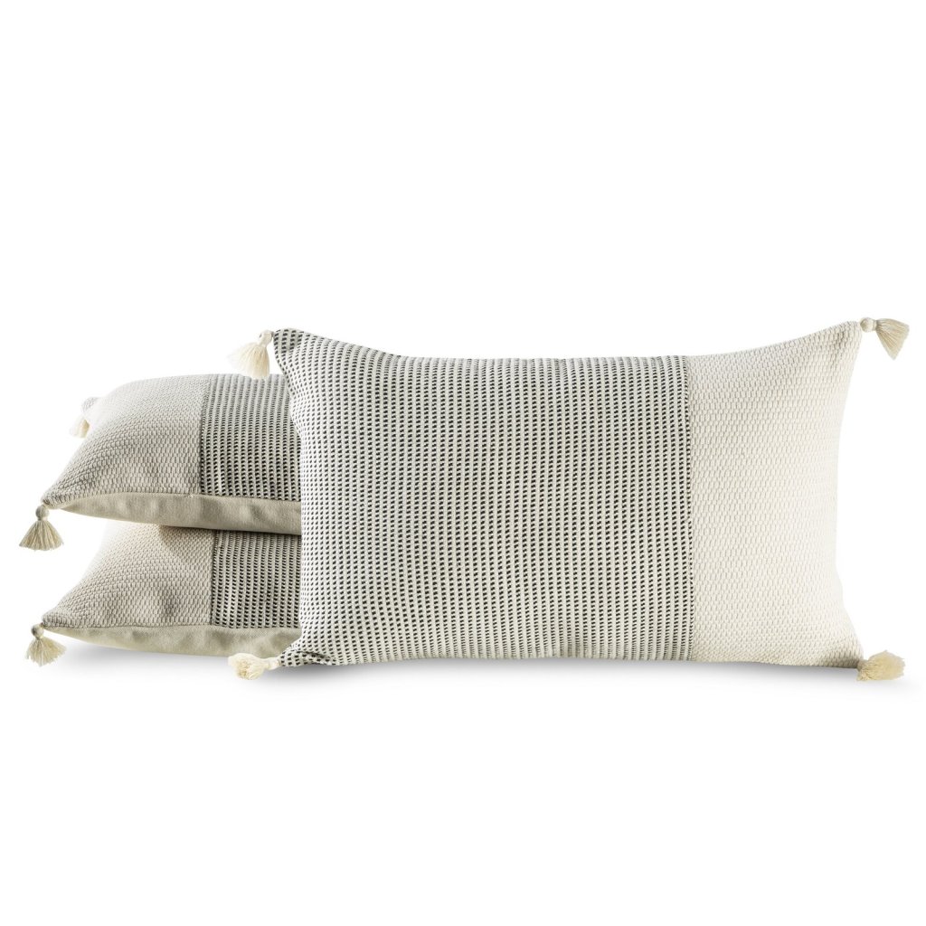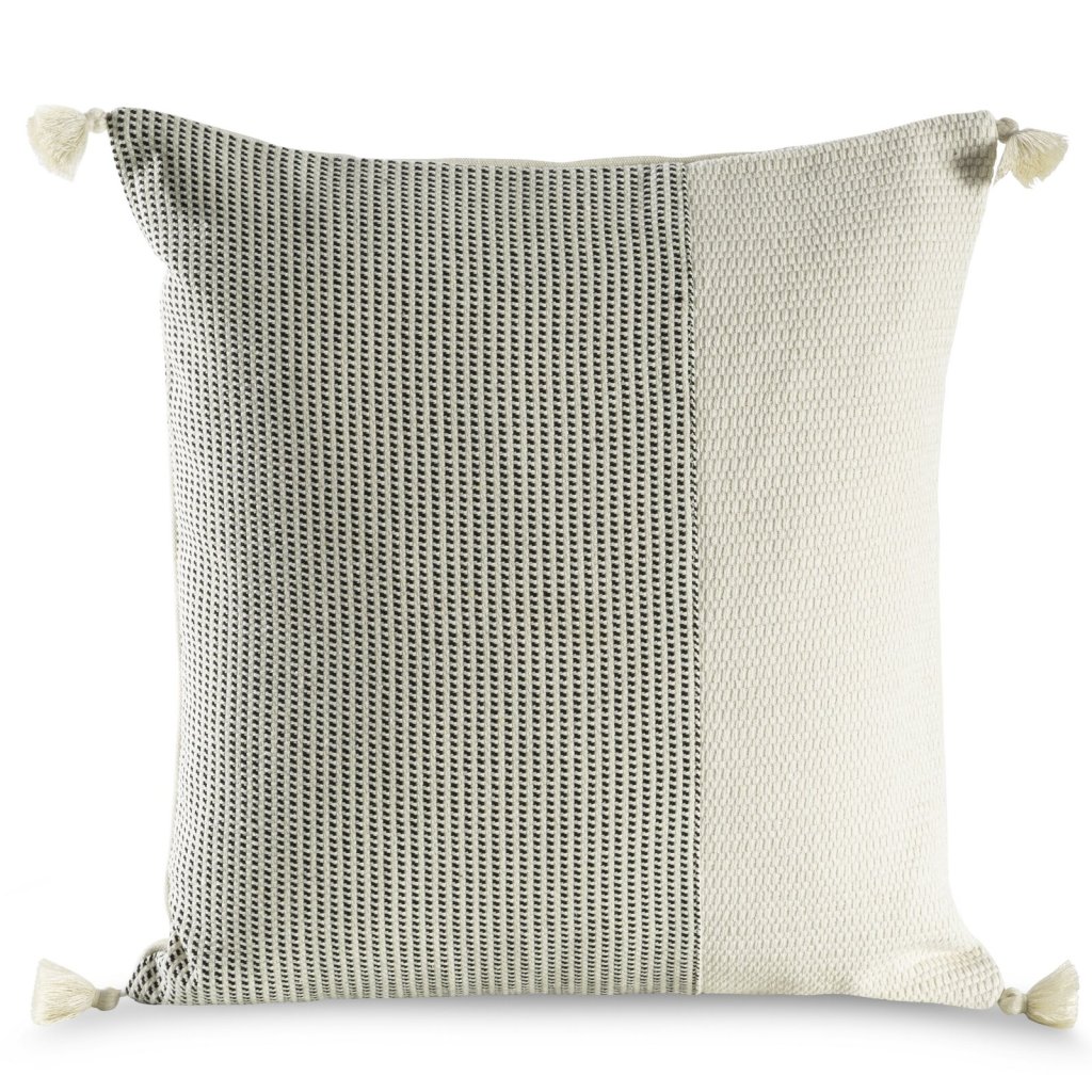 Dekorační povlak na polštář v boho stylu s bambulkami, šířka: 45 cm, délka: 45 cm, barva: krémová, hmotnost: 850 GSM, složení: 100% polyester.Doplňkové parametry