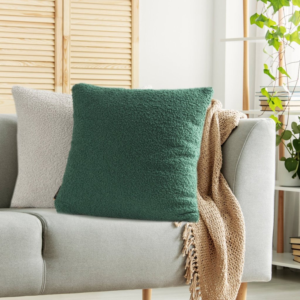 DEKORAČNÍ POVLAK NA POLŠTÁŘ BUKLE 45X45 CM TMAVĚZELENÁ