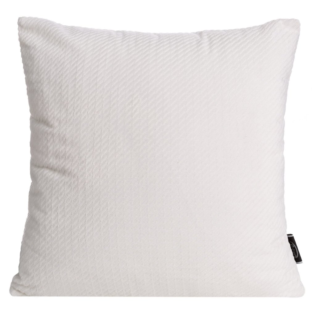 Sametový dekorační povlak na polštář zdobený jemným vzorem se zapínáním na zip. Šířka: 40 cm, délka: 40 cm, barva: bílá, hmotnost: 210 GSM, složení: 100 % polyester.Doplňkové parametry