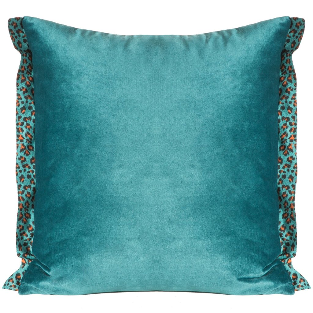 Elegantní sametový přehoz na postel v tmavě tyrkysové barvě zaujme originálním lemováním s leopardím vzorem. Díky měkkému povrchu a dekorativnímu designu je ideálním doplňkem moderního interiéru. Šířka: 45 cm, délka: 45 cm, barva: tmavě tyrkysová, gramáž: 210 GSM, složení: 100% polyester.Doplňkové parametry