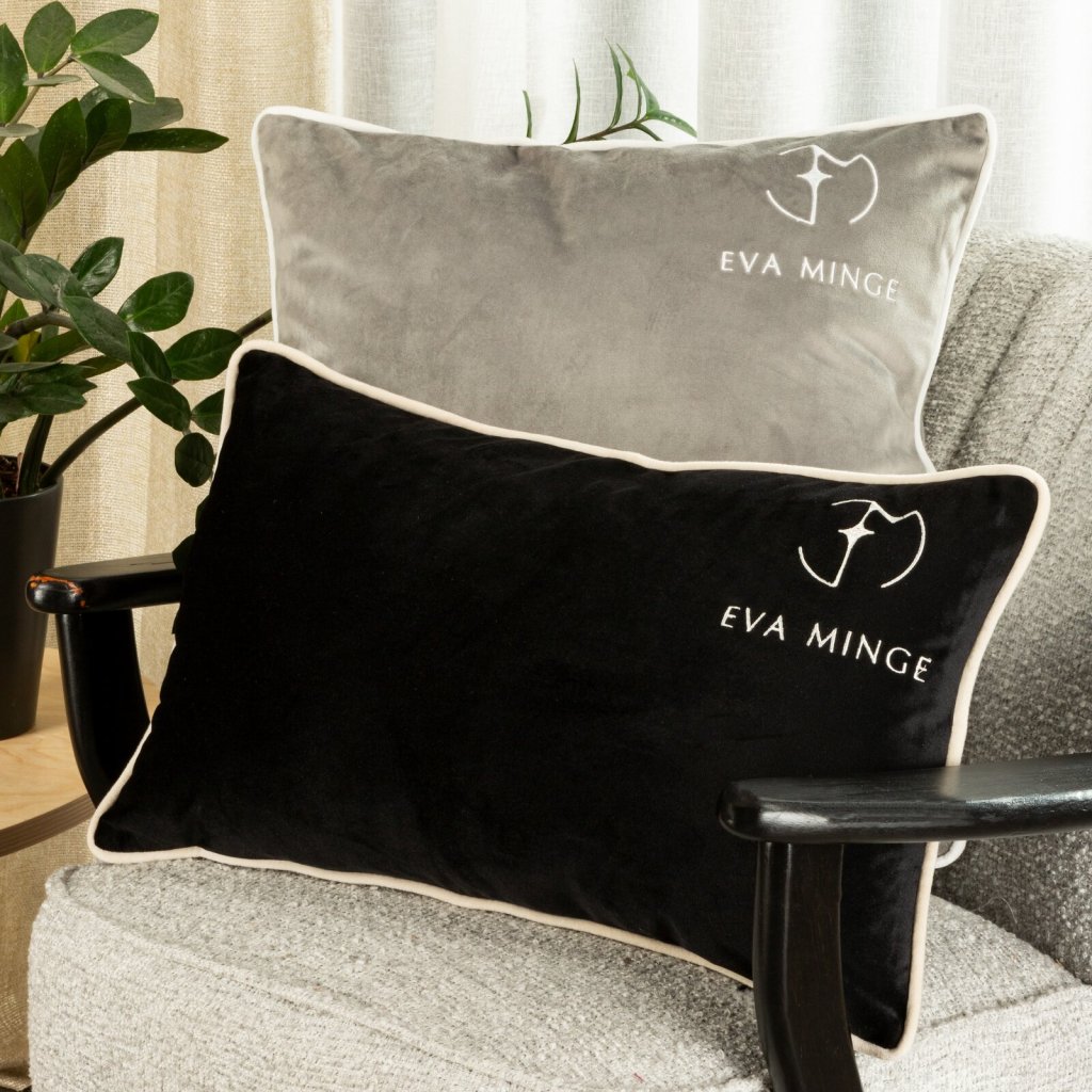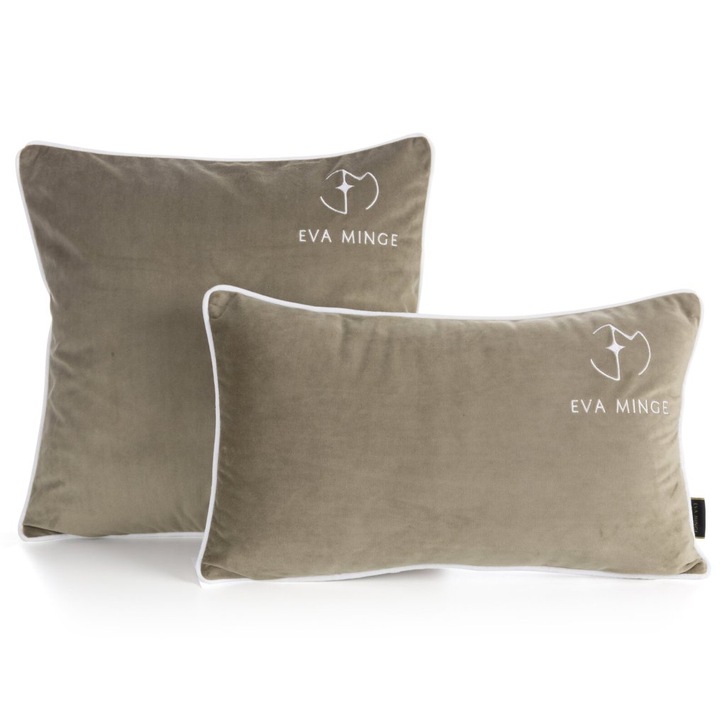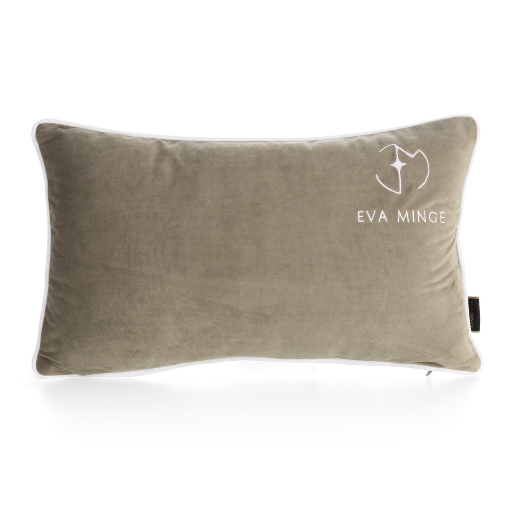 Dekorační povlak na polštář z kolekce Eva Minge s logem, šířka: 30 cm, délka: 50 cm, barva: béžová, hmotnost: 240 GSM, složení: 100% polyester.Doplňkové parametry