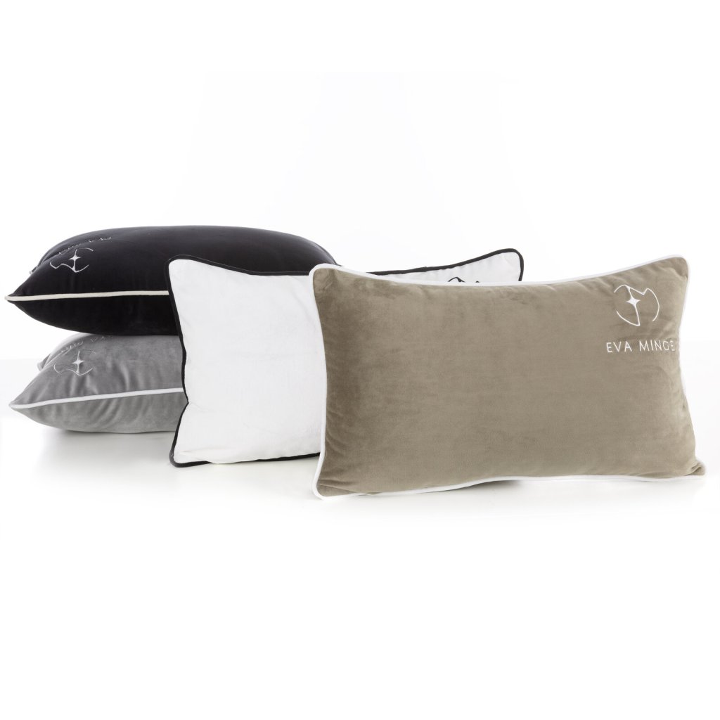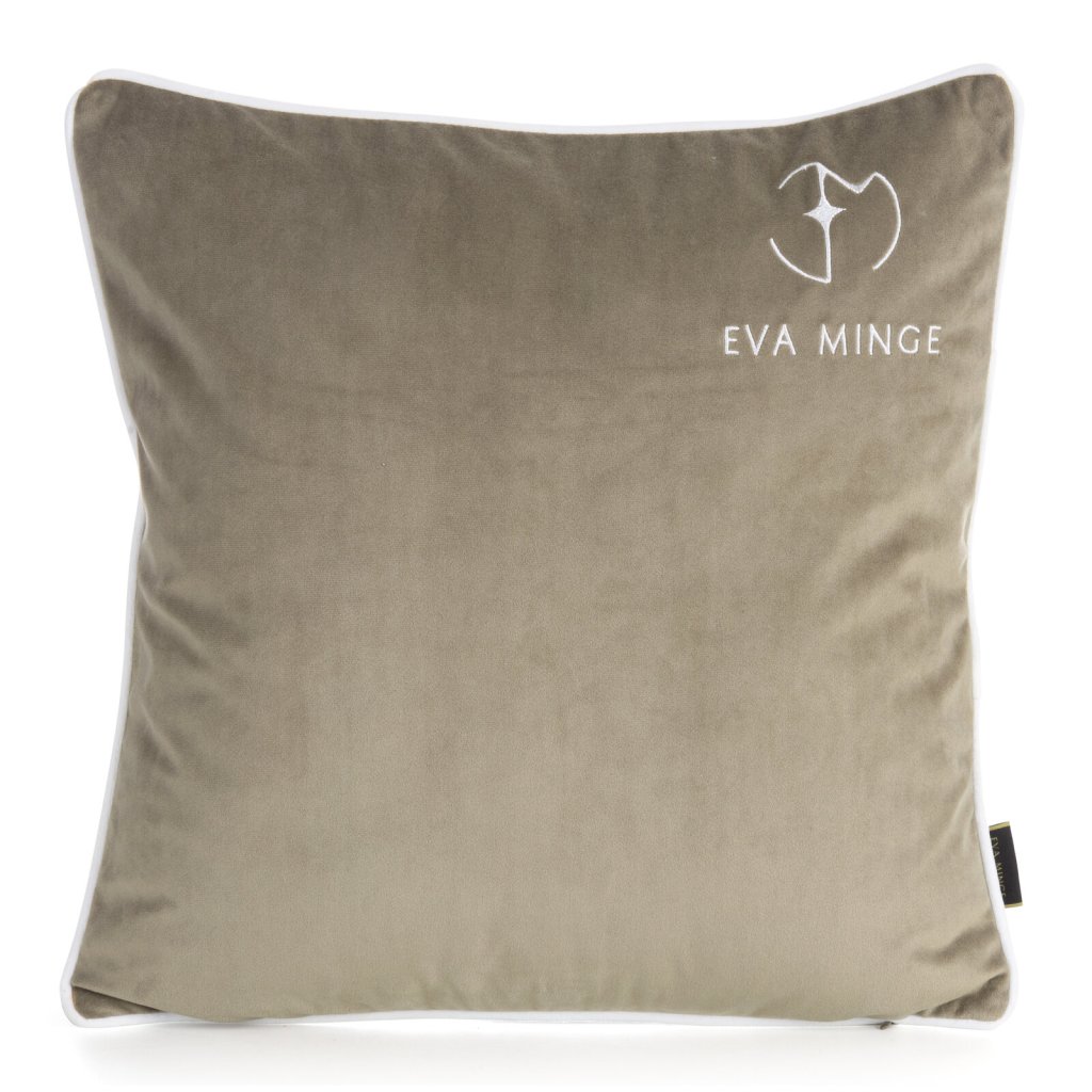 Sametový povlak na polštář z kolekce Eva Minge s logem, šířka: 45 cm, délka: 45 cm, barva: béžová, hmotnost: 240 GSM, složení: 100% polyester.Doplňkové parametry