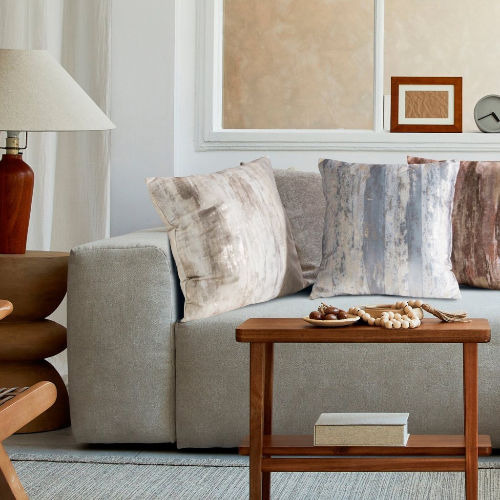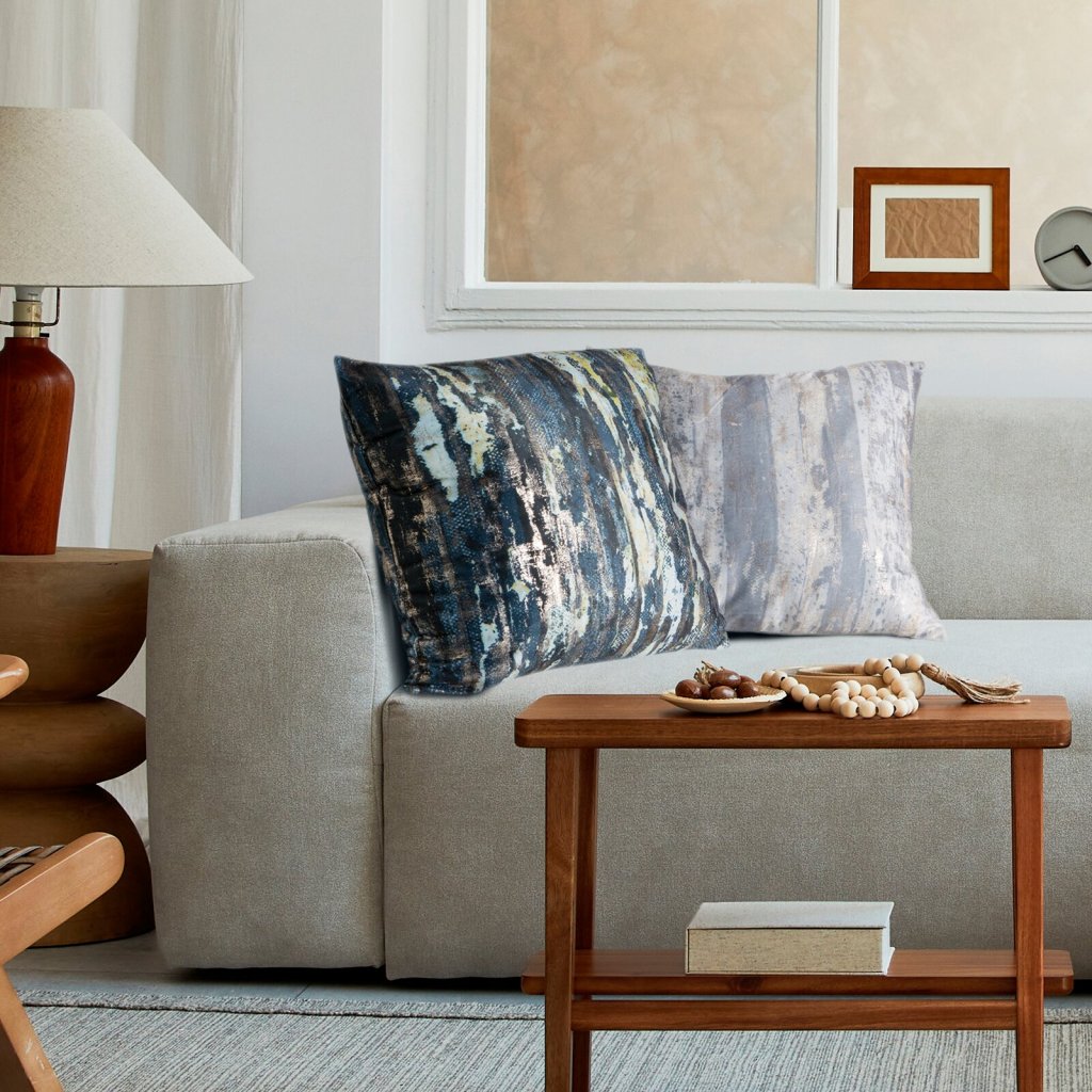 Sametový povlak na polštář s metalickým potiskem, šířka: 45 cm, délka: 45 cm, barva: šedá, hmotnost: 200 GSM, složení: 100% polyester.Doplňkové parametry