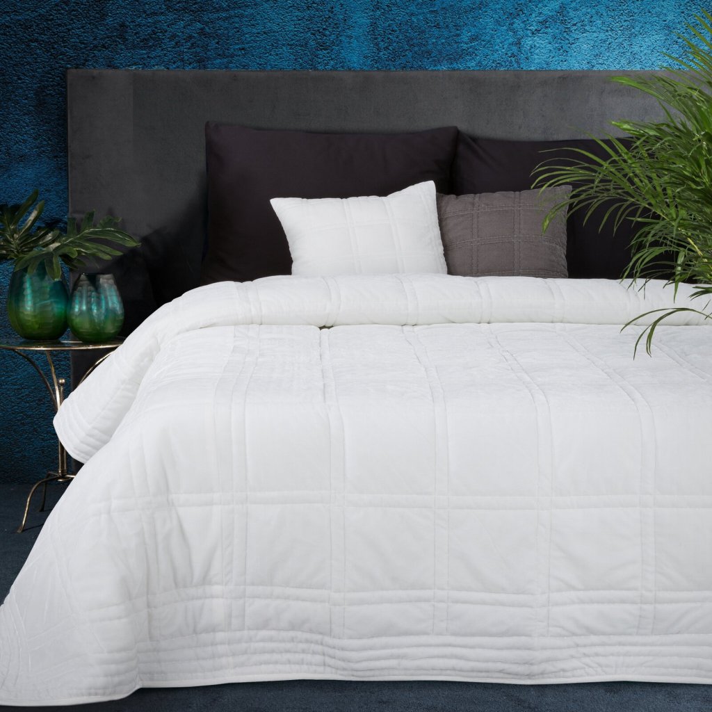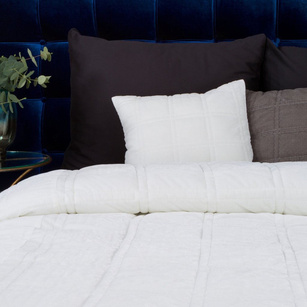 Sametový dekorační povlak na polštář prošívaný nití s charakteristickým třpytem. šířka: 45 cm, délka: 45 cm, barva: bílá, gramáž: 220 GSM, složení: 100% polyesterDoplňkové parametry