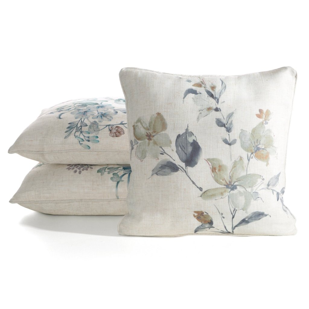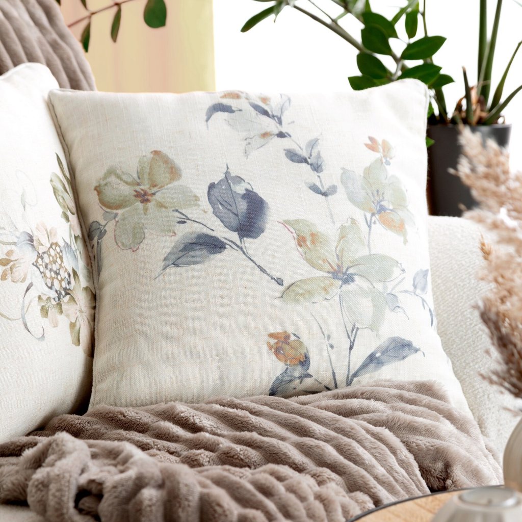 Dekorační povlak na polštář LEN z látky se strukturou lnu a potiskem květin, šířka: 45 cm, délka: 45 cm, barva: vícebarevná, složení: 100% polyester.Doplňkové parametry