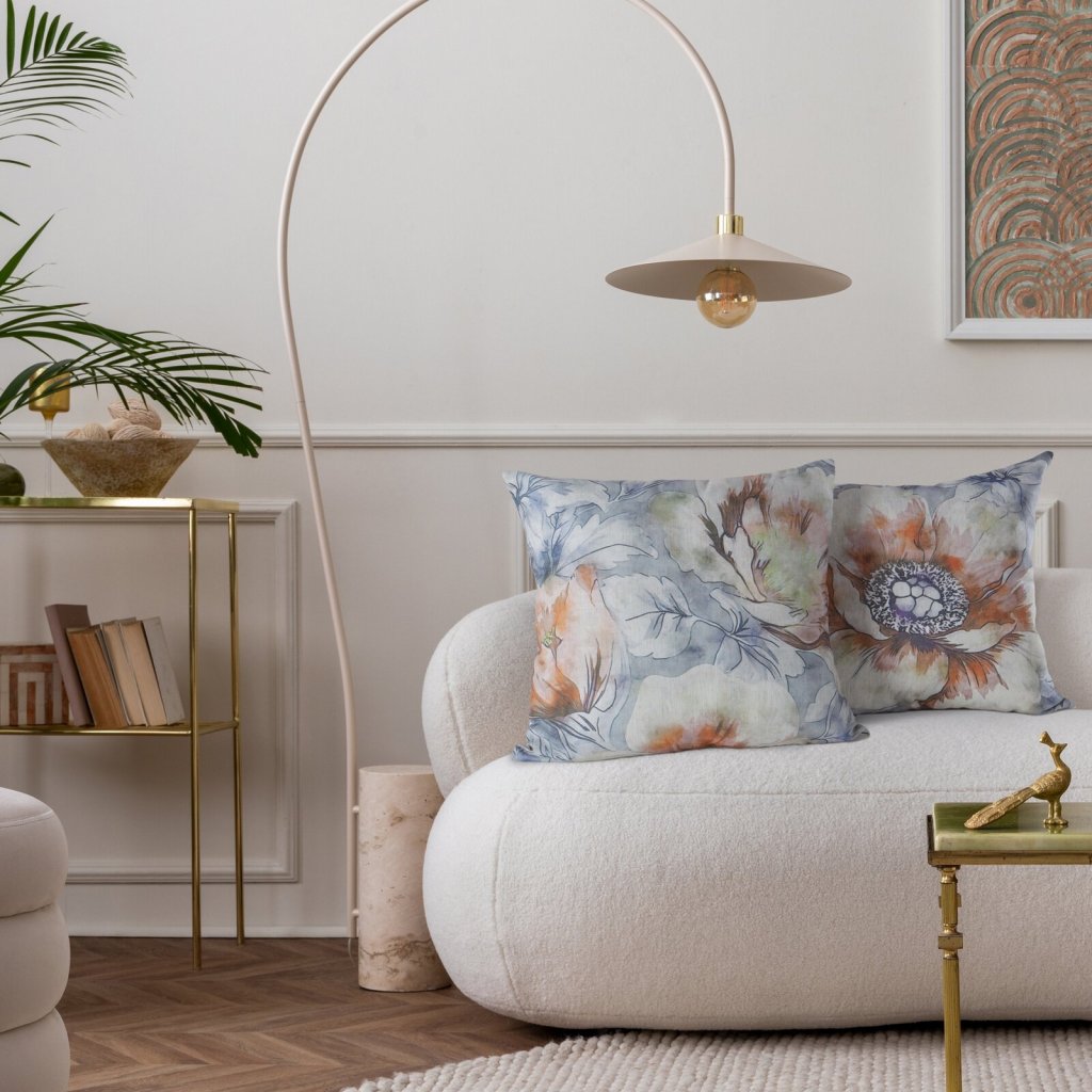 Dekorační povlak na polštář LEN z látky se strukturou lnu a potiskem květin, šířka: 45 cm, délka: 45 cm, barva: vícebarevná, složení: 100% polyester.Doplňkové parametry