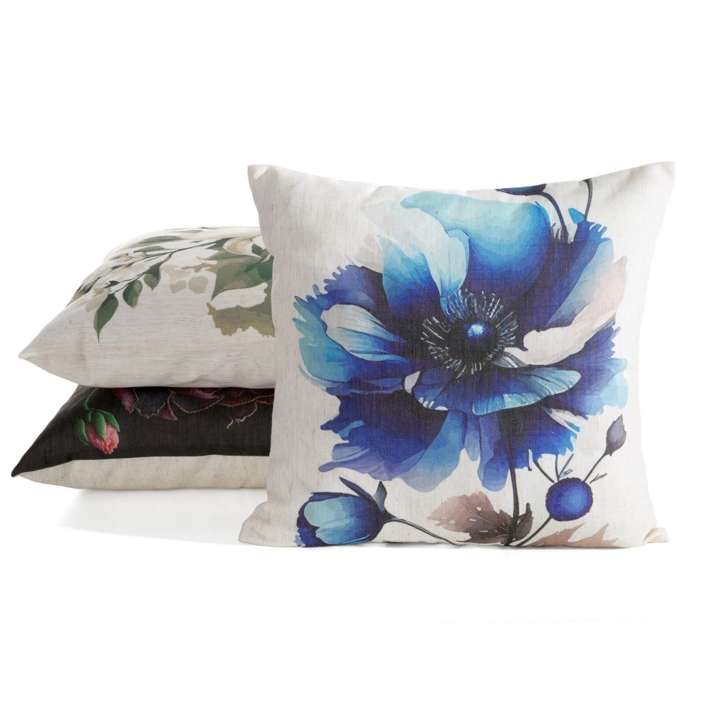 Dekorační povlak na polštář LEN z látky se strukturou lnu a potiskem květin, šířka: 45 cm, délka: 45 cm, barva: vícebarevná, složení: 100% polyester.Doplňkové parametry