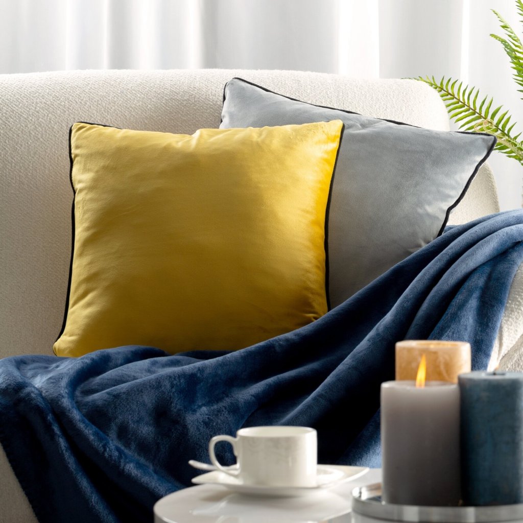 Jednobarevný sametový povlak na polštář s lemem kolem okrajů, barva: tmavě modrá, šířka: 45 cm, délka: 45 cm, hmotnost: 200 GSM, složení: 100% polyester.Doplňkové parametry