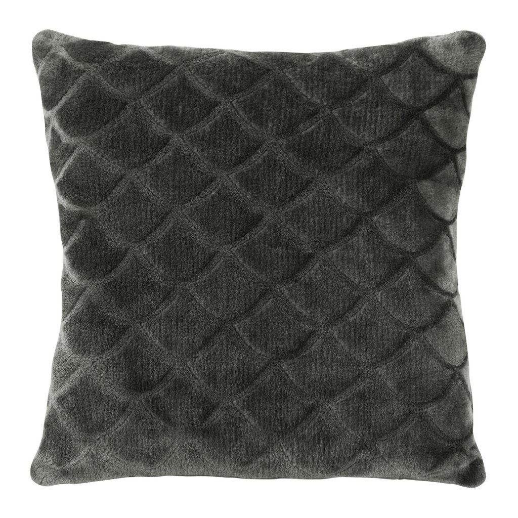 Dekorační povlak na polštář zdobený jemným, měkkým vzorem vytvářejícím 3D efekt. šířka: 40 cm, délka: 40 cm, barva: tmavě šedá, hmotnost: 250 GSM, složení: 100% polyester.Doplňkové parametry